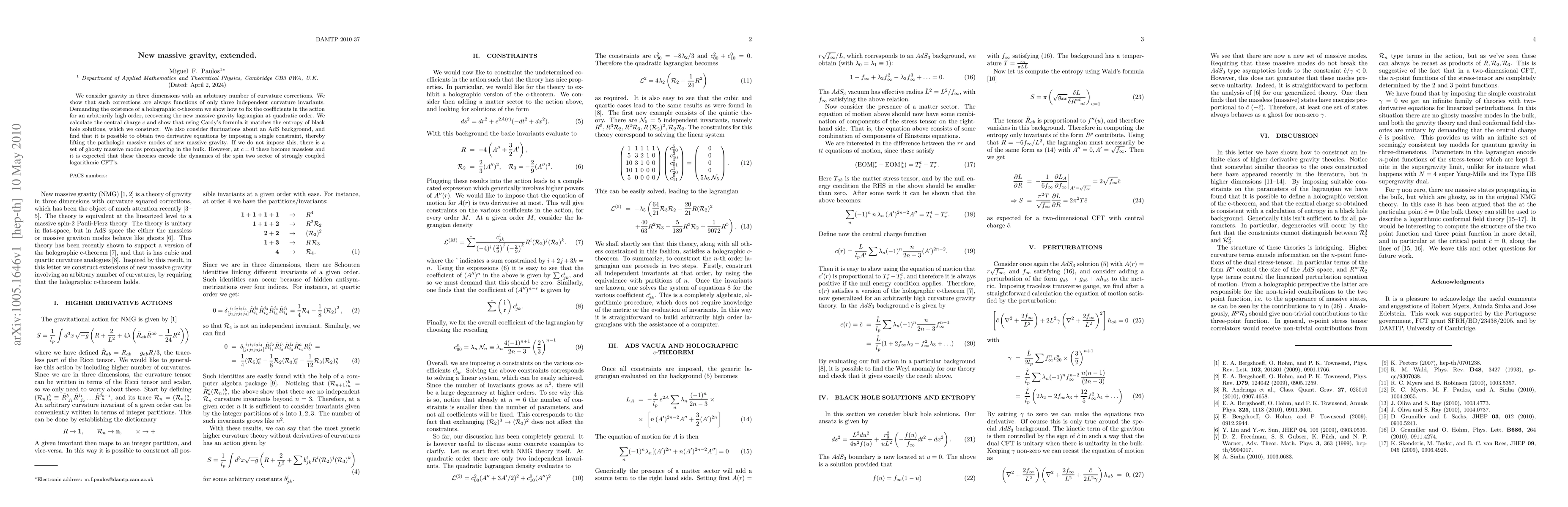 We consider gravity in three dimensions with an arbitrary number of curvature corrections. We show that such corrections are always functions of only three independent curvature invariants. Demanding the existence of a holographic c-theorem we show how to fix the coefficients in the action for an arbitrarily high order, recovering the new massive gravity lagrangian at quadratic order. We calculate the central charge $c$ and show that using Cardy's formula it matches the entropy of black hole solutions, which we construct. We also consider fluctuations about an AdS background, and find that it is possible to obtain two derivative equations by imposing a single constraint, thereby lifting the pathologic massive modes of new massive gravity. If we do not impose this, there is a set of ghosty massive modes propagating in the bulk. However, at $c=0$ these become massless and it is expected that these theories encode the dynamics of the spin two sector of strongly coupled logarithmic CFT's.