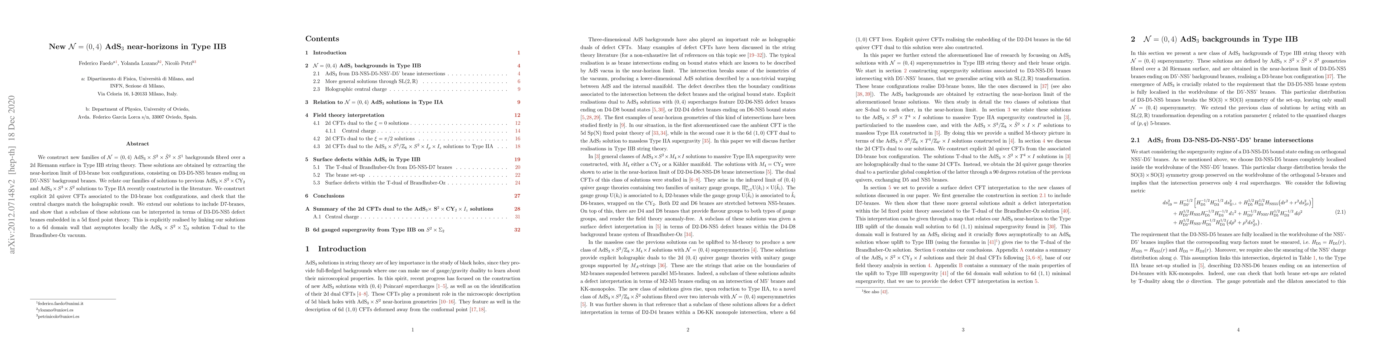 We construct new families of $\mathcal{N}=(0,4)$ $\mathrm{AdS}_3\times S^2 \times \tilde S^2 \times S^1$ backgrounds fibred over a 2d Riemann surface in Type IIB string theory. These solutions are obtained by extracting the near-horizon limit of D3-brane box configurations, consisting on D3-D5-NS5 branes ending on D5'-NS5' background branes. We relate our families of solutions to previous $\mathrm{AdS}_3\times S^2 \times \text{CY}_2$ and $\mathrm{AdS}_3\times S^3 \times S^2$ solutions to Type IIA recently constructed in the literature. We construct explicit 2d quiver CFTs associated to the D3-brane box configurations, and check that the central charges match the holographic result. We extend our solutions to include D7-branes, and show that a subclass of these solutions can be interpreted in terms of D3-D5-NS5 defect branes embedded in a 5d fixed point theory. This is explicitly realised by linking our solutions to a 6d domain wall that asymptotes locally the $\mathrm{AdS}_6\times S^2 \times \Sigma_2$ solution T-dual to the Brandhuber-Oz vacuum.