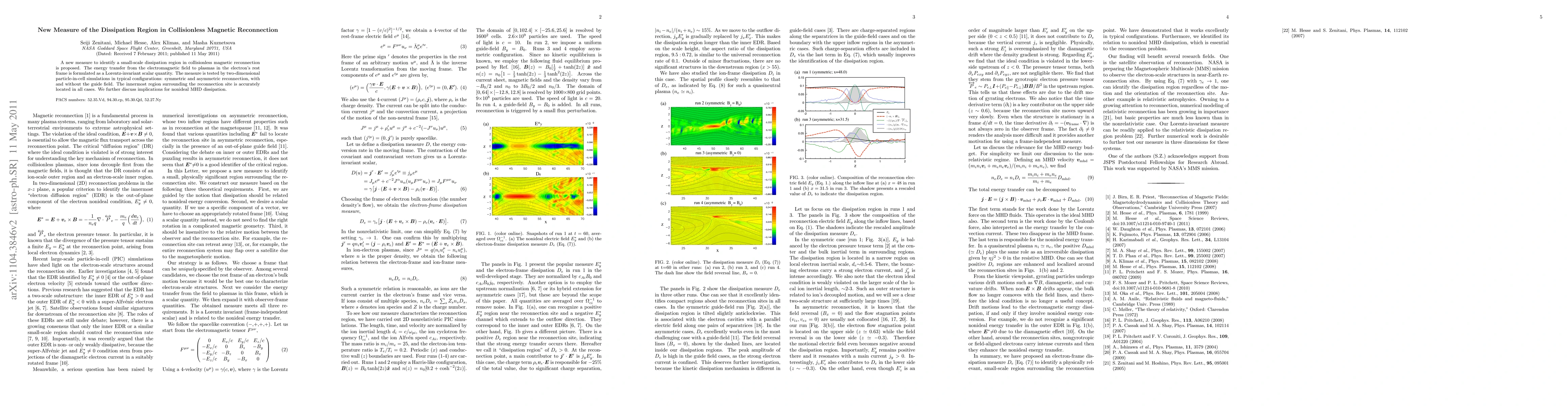 This paper proposes a new Lorentz-invariant scalar measure to identify a small-scale dissipation region in collisionless magnetic reconnection, validated through two-dimensional simulations. The measure accurately locates the innermost reconnection region in various configurations, with implications for understanding nonideal magnetohydrodynamic (MHD) dissipation.