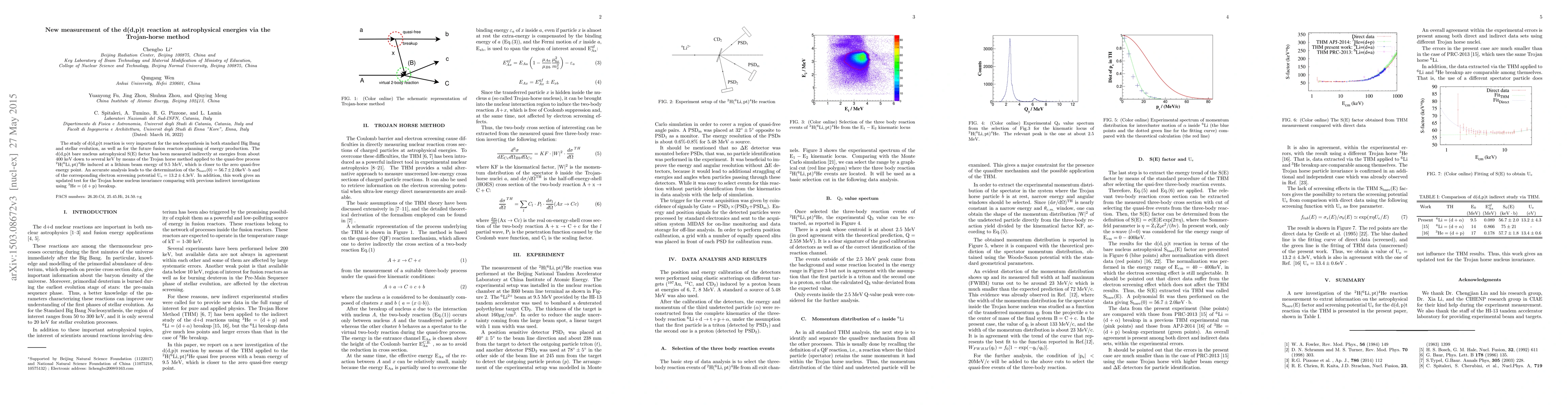 This paper measures the d(d,p)t reaction's astrophysical S(E) factor at low energies using the Trojan-horse method, determining $\rm S_{bare}(0)=56.7 \pm 2.0 keV \cdot b$ and $\rm U_e = 13.2 \pm 4.3 eV$, which is crucial for nucleosynthesis and fusion reactor planning.