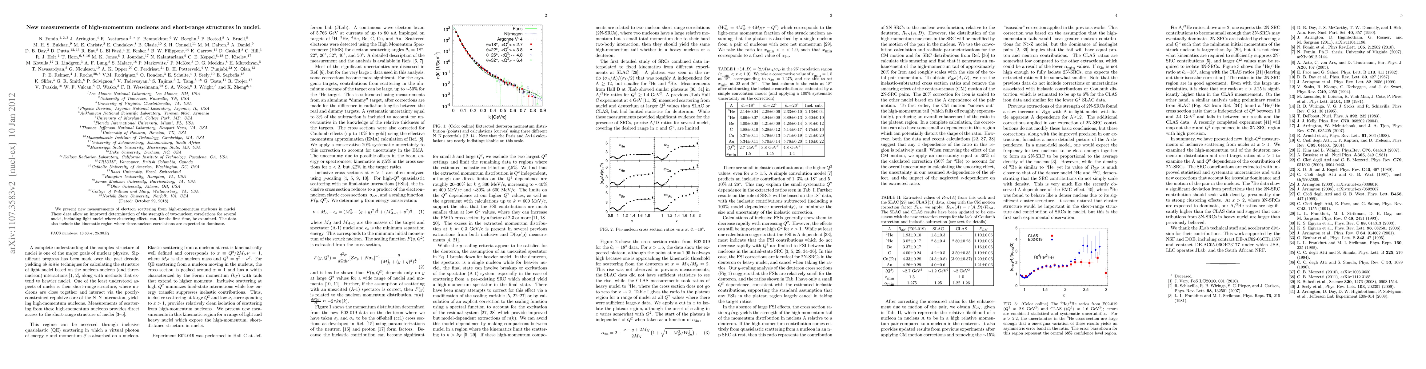 The research utilized electron scattering measurements from high-momentum nucleons in various nuclei, including light nuclei, using a continuous wave electron beam at JLab with currents up to 80 μA impinging on targets like 2H, 3He, 4He, Be, C, Cu, and Au. Scattered electrons were detected using the High Momentum Spectrometer (HMS) for electron scattering angles θe = 18°, 22°, 26°, 32°, 40°, and 50°.