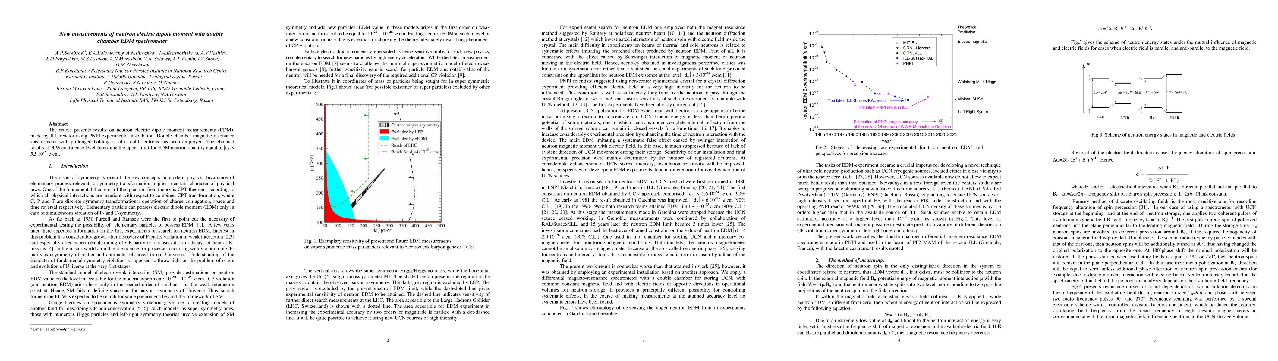 The paper reports new measurements of the neutron electric dipole moment (EDM) using a double chamber magnetic resonance spectrometer at the ILL reactor, establishing an upper limit of $|d_n| < 5.5 \cdot 10^{-26}$ e$\cdot$cm at 90% confidence level.