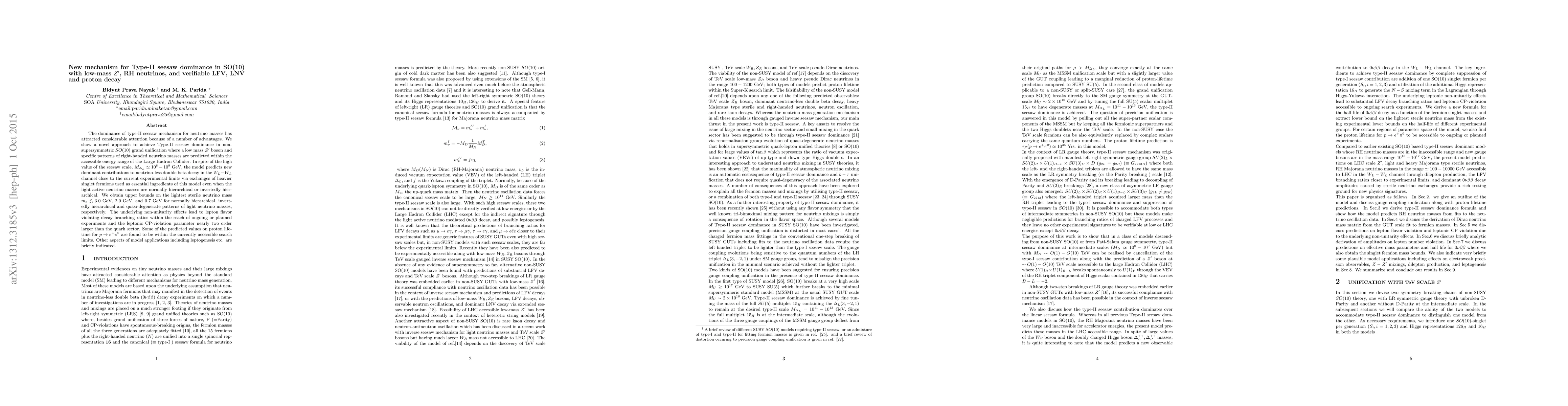 Researchers propose a new mechanism for achieving Type-II seesaw dominance in SO(10) grand unification with low-mass Z-boson and right-handed neutrinos, predicting verifiable lepton flavor violation and proton decay.
