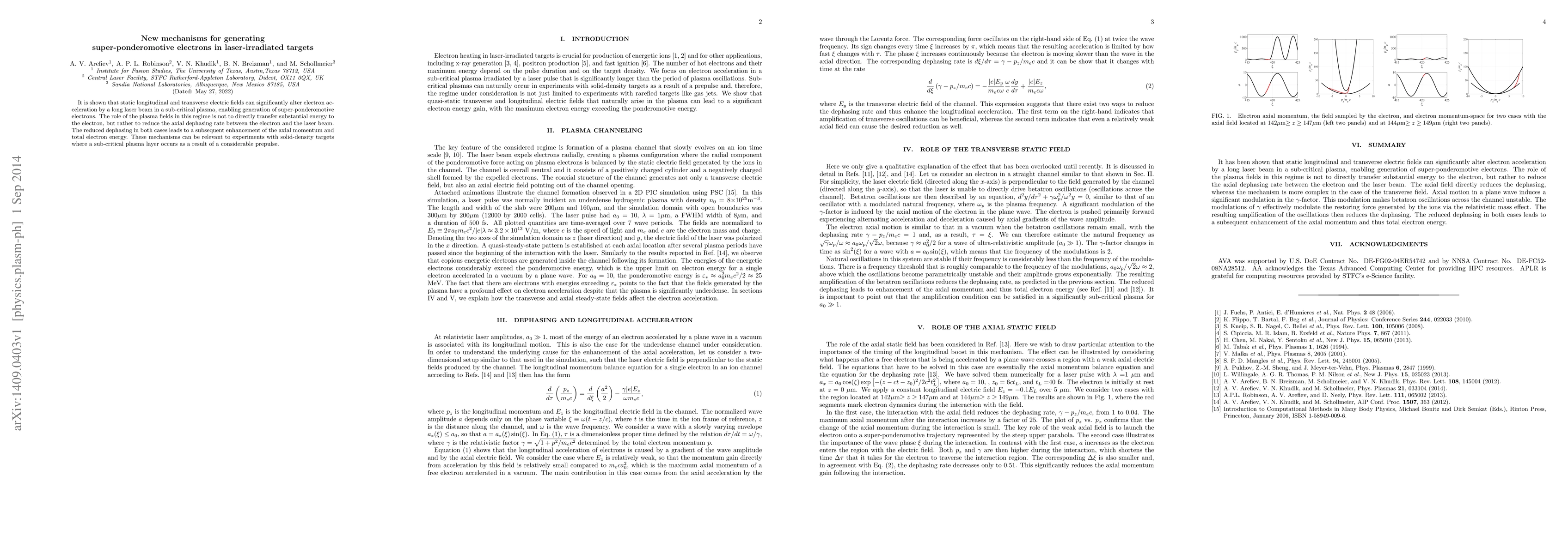 It is shown that static longitudinal and transverse electric fields can significantly alter electron acceleration by a long laser beam in a sub-critical plasma, enabling generation of super-ponderomotive electrons. The role of the plasma fields in this regime is not to directly transfer substantial energy to the electron, but rather to reduce the axial dephasing rate between the electron and the laser beam. The reduced dephasing in both cases leads to a subsequent enhancement of the axial momentum and total electron energy. These mechanisms can be relevant to experiments with solid-density targets where a sub-critical plasma layer occurs as a result of a considerable prepulse.