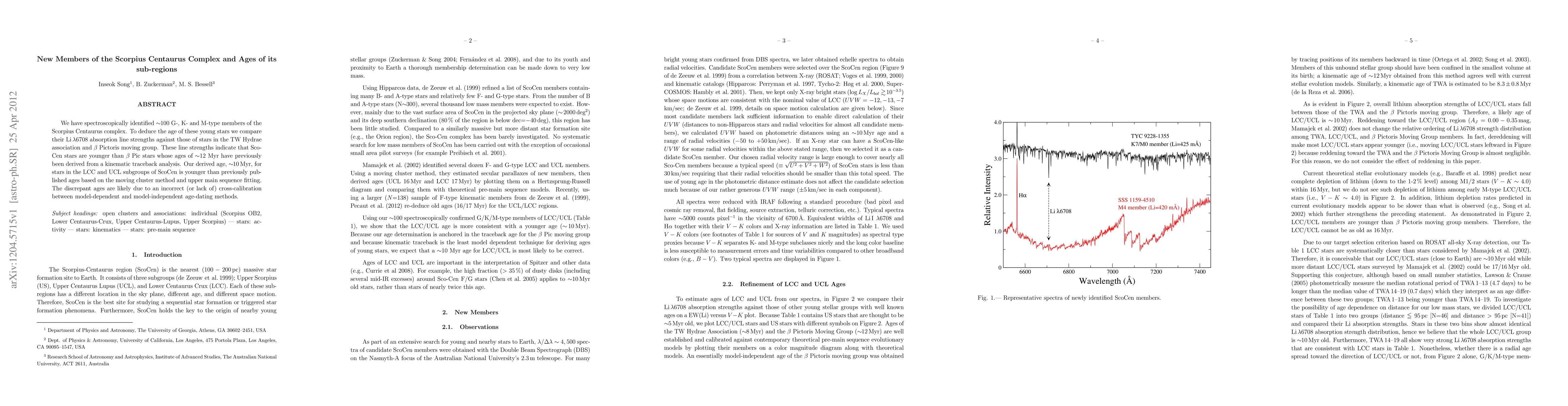 This paper identifies around 100 G-, K-, and M-type stars in the Scorpius Centaurus complex and determines their ages by comparing lithium line strengths. The derived age of ~10 Myr for the LCC and UCL subgroups is younger than previously published ages, suggesting discrepancies in age-dating methods.