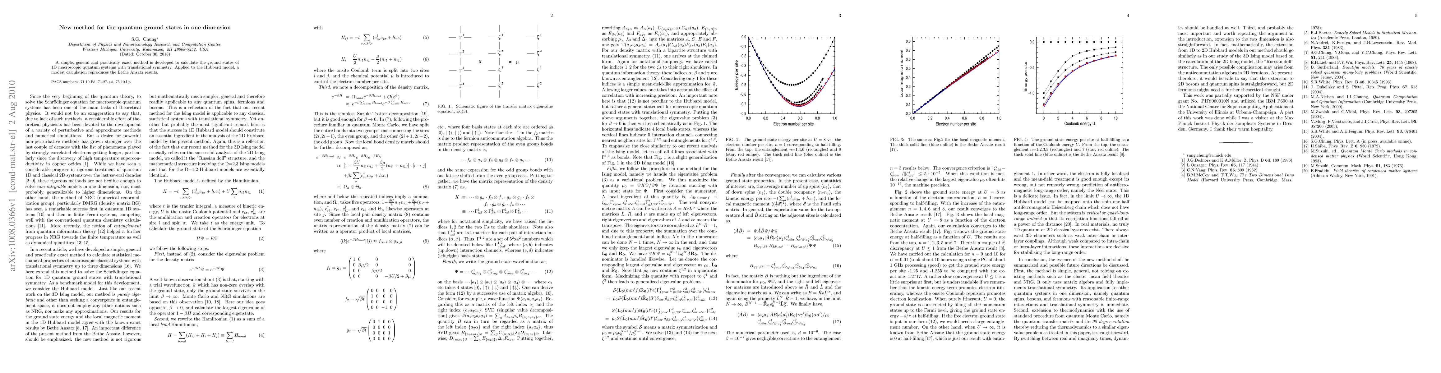A simple, general and practically exact method is developed to calculate the ground states of 1D macroscopic quantum systems with translational symmetry. Applied to the Hubbard model, a modest calculation reproduces the Bethe Ansatz results.