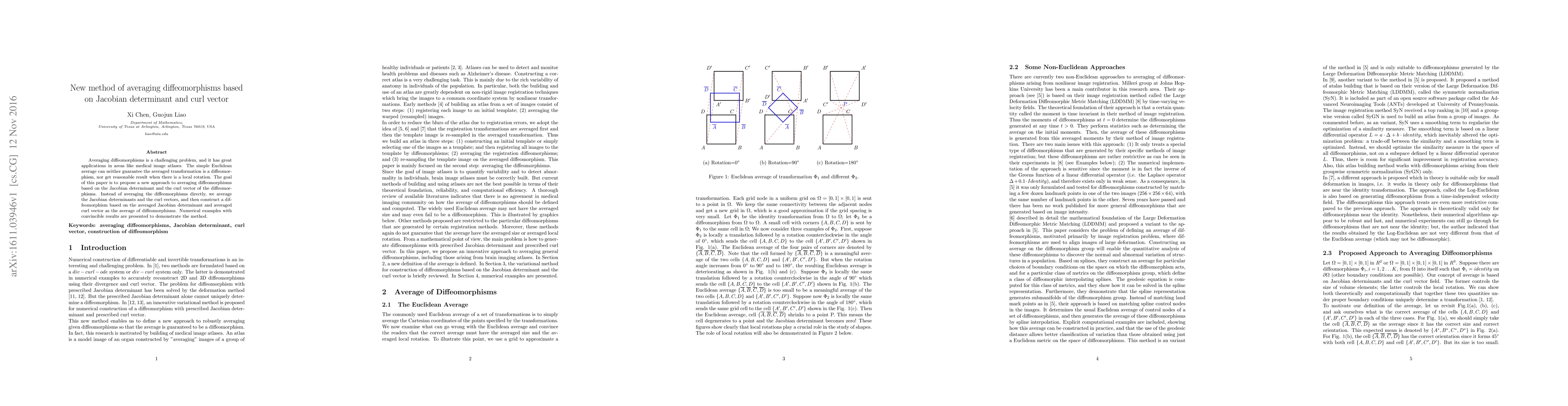 Averaging diffeomorphisms is a challenging problem, and it has great applications in areas like medical image atlases. The simple Euclidean average can neither guarantee the averaged transformation is a diffeomorphism, nor get reasonable result when there is a local rotation. The goal of this paper is to propose a new approach to averaging diffeomorphisms based on the Jacobian determinant and the curl vector of the diffeomorphisms. Instead of averaging the diffeomorphisms directly, we average the Jacobian determinants and the curl vectors, and then construct a diffeomorphism based on the averaged Jacobian determinant and averaged curl vector as the average of diffeomorphisms. Numerical examples with convincible results are presented to demonstrate the method.