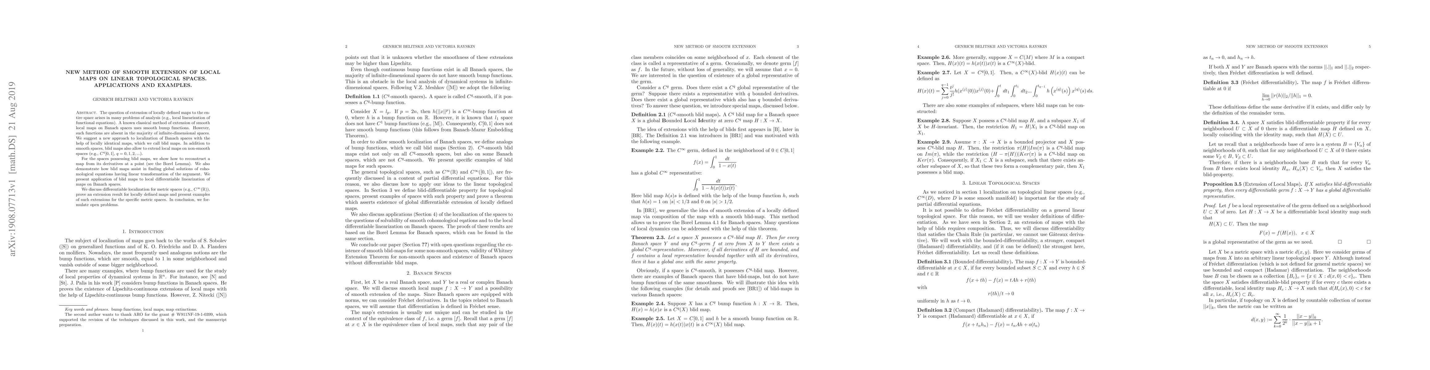 Researchers develop a new method to extend locally defined maps on linear topological spaces using locally identical maps, enabling applications in analysis and cohomology equations.