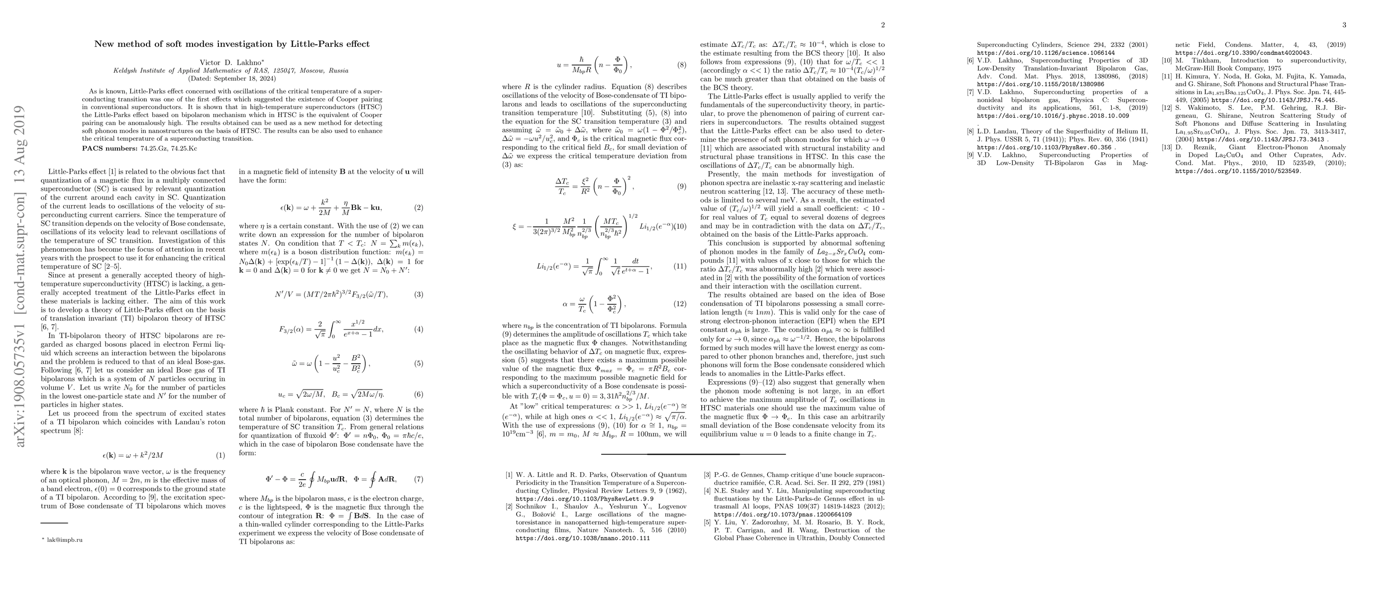 This paper introduces a novel method for investigating soft phonon modes in high-temperature superconductors (HTSC) using the Little-Parks effect based on bipolaron mechanisms. The findings can enhance the critical temperature of superconducting transitions and serve as a new detection technique for nanostructures.