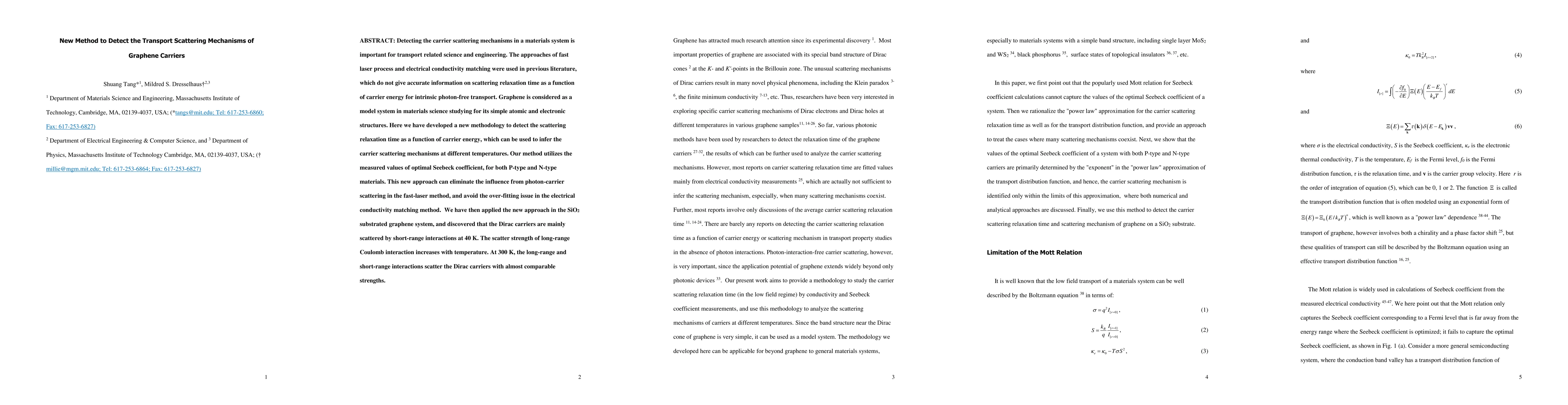 Detecting the carrier scattering mechanisms in a materials system is important for transport related science and engineering. The approaches of fast laser process and electrical conductivity matching were used in previous literature, which do not give accurate information on scattering relaxation time as a function of carrier energy for intrinsic photon-free transport. Graphene is considered as a model system in materials science studying for its simple atomic and electronic structures. Here we have developed a new methodology to detect the scattering relaxation time as a function of carrier energy, which can be used to infer the carrier scattering mechanisms at different temperatures. Our method utilizes the measured values of optimal Seebeck coefficient, for both P-type and N-type materials. This new approach can eliminate the influence from photon-carrier scattering in the fast-laser method, and avoid the over-fitting issue in the electrical conductivity matching method. We have then applied the new approach in the SiO2 substrated graphene system, and discovered that the Dirac carriers are mainly scattered by short-range interactions at 40 K. The scatter strength of long-range Coulomb interaction increases with temperature. At 300 K, the long-range and short-range interactions scatter the Dirac carriers with almost comparable strengths.