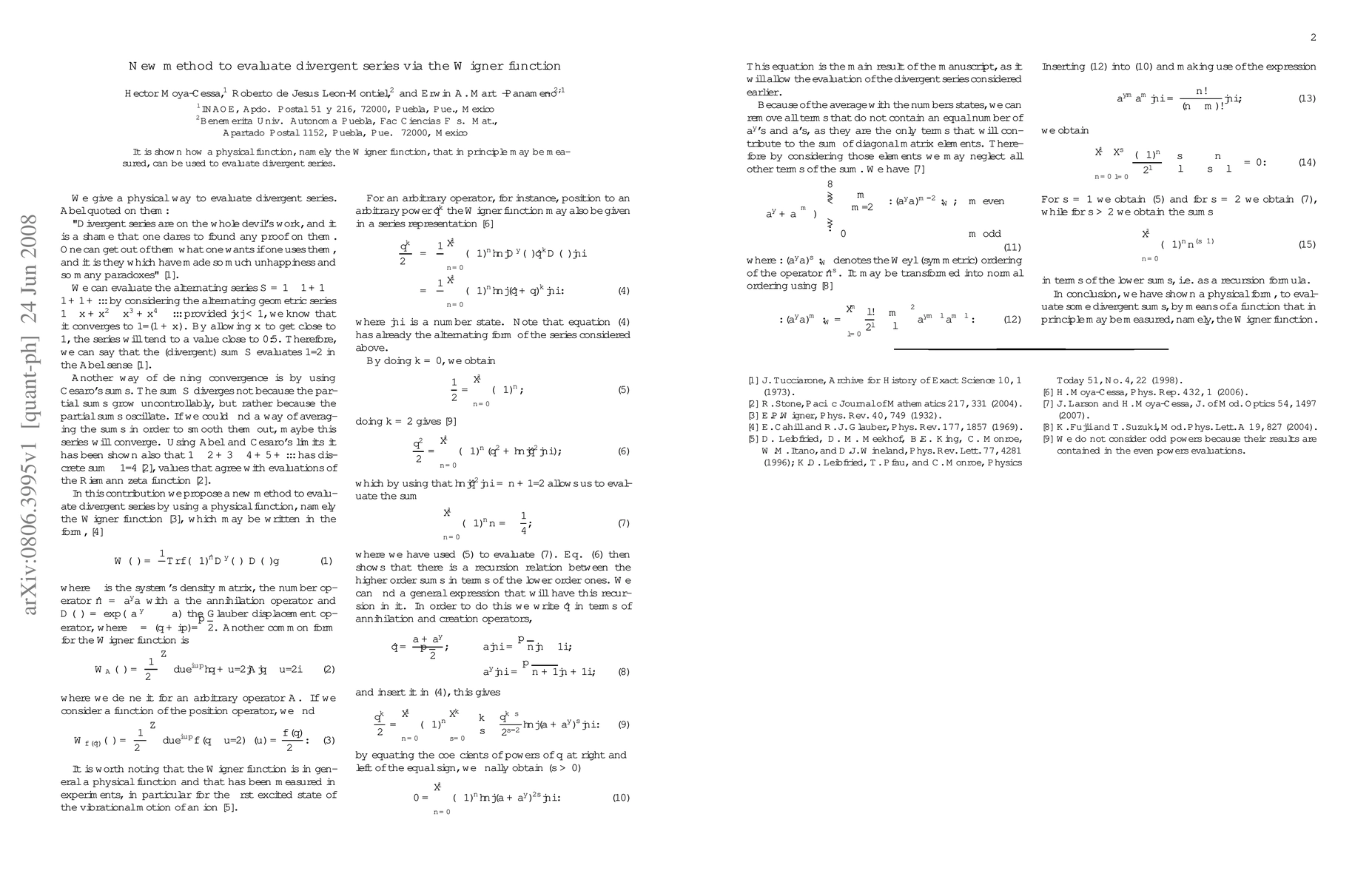 It is shown how a physical function, namely the Wigner function, that in principle may be measured, can be used to evaluate divergent series.