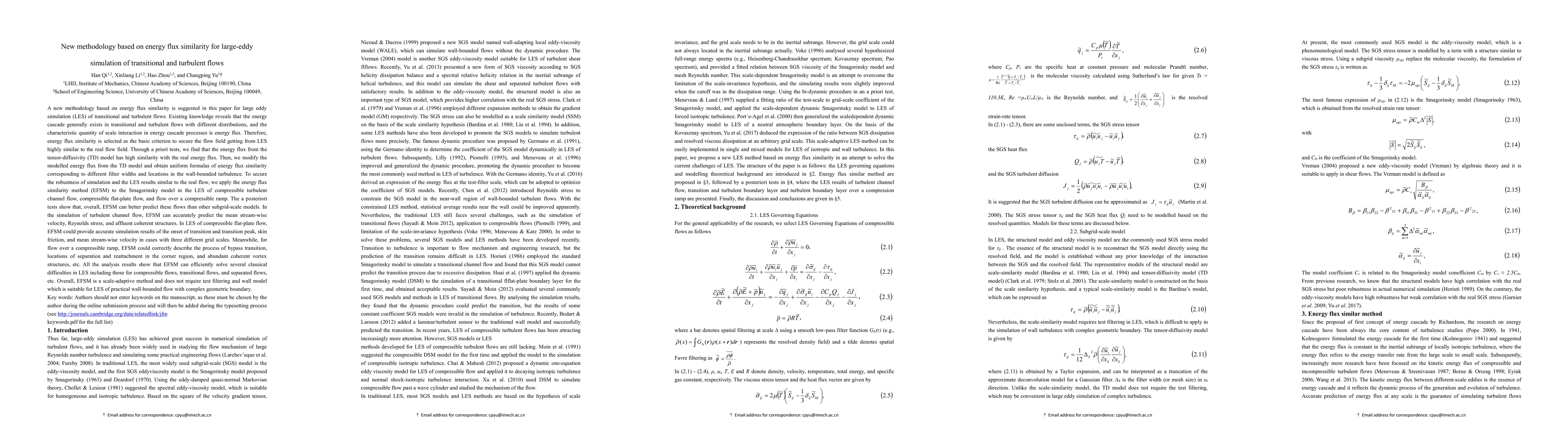 This paper proposes a new methodology based on energy flux similarity for large-eddy simulation (LES) of transitional and turbulent flows, demonstrating its effectiveness through a priori and a posteriori tests. The energy flux similarity method (EFSM) improves the accuracy of LES results in various compressible flows, including turbulent channel flow, flat-plate flow, and flow over a ramp.