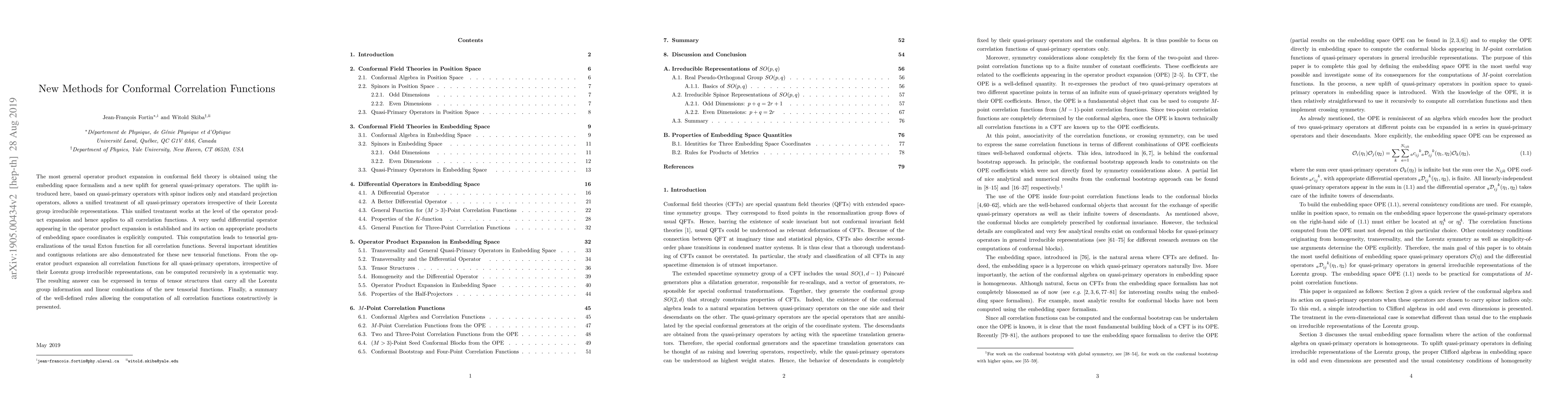 This paper introduces a new method for computing conformal correlation functions using the embedding space formalism and a novel uplift technique for quasi-primary operators. The method allows for a unified treatment of all quasi-primary operators, leading to recursive computation of correlation functions expressed in terms of tensorial generalizations of the Exton function.