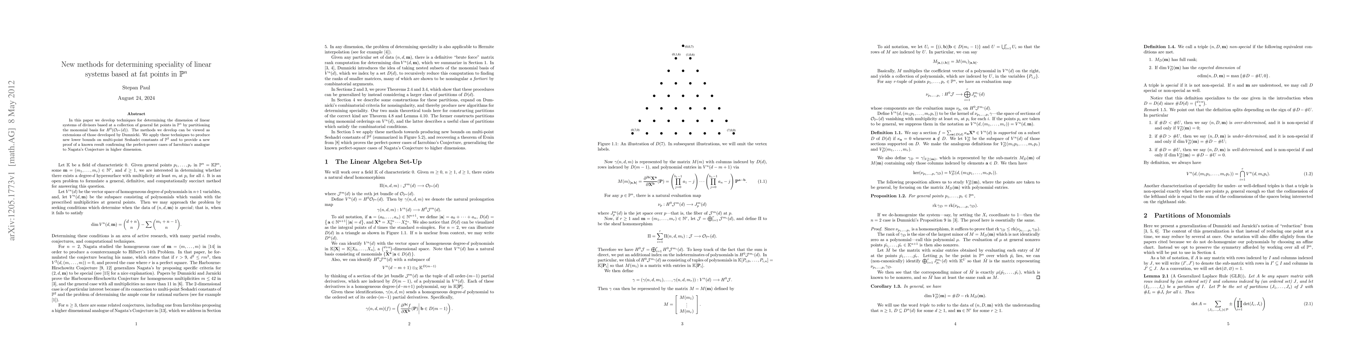 In this paper we develop techniques for determining the dimension of linear systems of divisors based at a collection of general fat points in P^n by partitioning the monomial basis for the vector space of global sections of O(d). The methods we develop can be viewed as extensions of those developed by Dumnicki. We apply these techniques to produce new lower bounds on multi-point Seshadri constants of P^2 and to provide a new proof of a known result confirming the perfect-power cases of Iarrobino's analogue to Nagata's Conjecture in higher dimension.