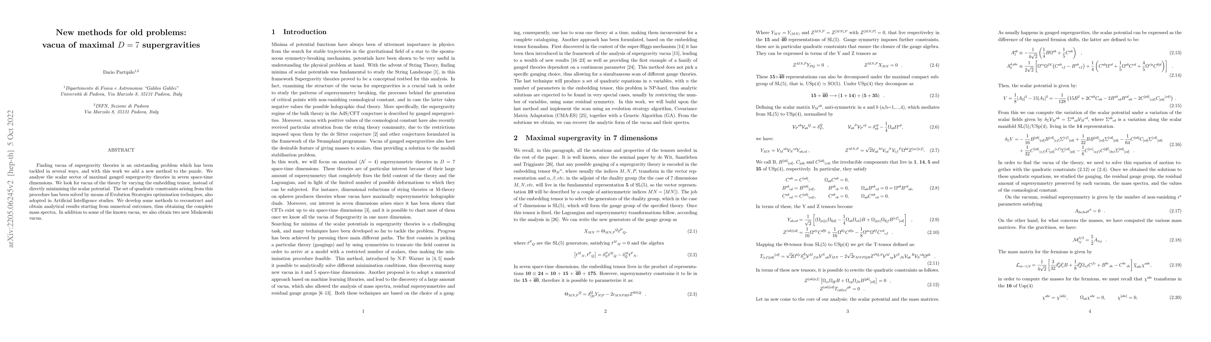 Finding vacua of supergravity theories is an outstanding problem which has been tackled in several ways, and with this work we add a new method to the puzzle. We analyse the scalar sector of maximal gauged supergravity theories in seven space-time dimensions. We look for vacua of the theory by varying the embedding tensor, instead of directly minimising the scalar potential. The set of quadratic constraints arising from this procedure has been solved by means of Evolution Strategies optimisation techniques, also adopted in Artificial Intelligence studies. We develop some methods to reconstruct and obtain analytical results starting from numerical outcomes, thus obtaining the complete mass spectra. In addition to some of the known vacua, we also obtain two new Minkowski vacua.
