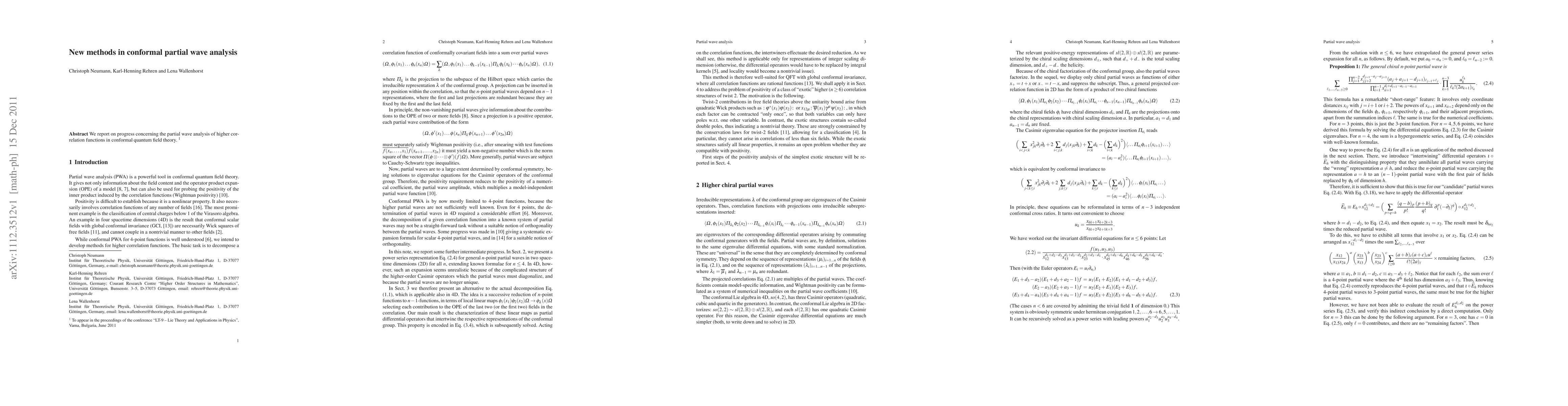 Summary: This paper introduces innovative techniques for analyzing higher correlation functions in conformal quantum field theory through partial wave analysis, advancing the understanding of conformal symmetries.
