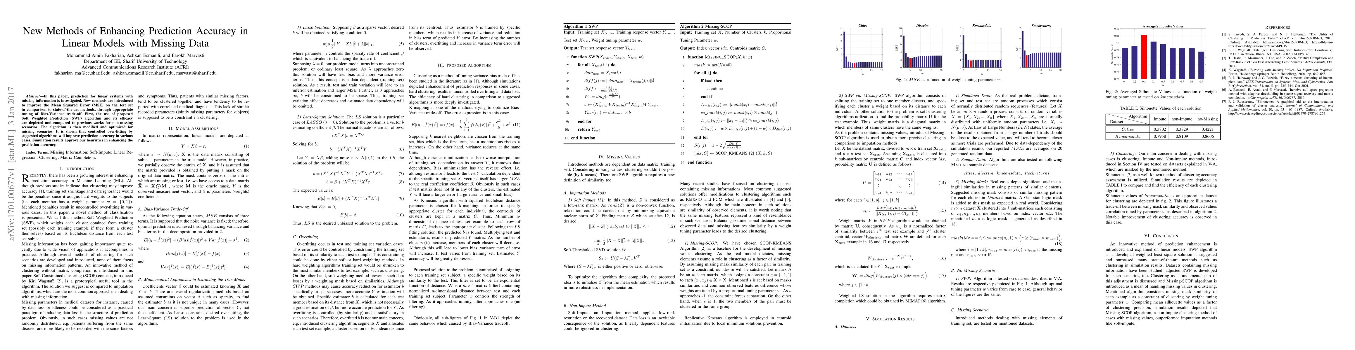 In this paper, prediction for linear systems with missing information is investigated. New methods are introduced to improve the Mean Squared Error (MSE) on the test set in comparison to state-of-the-art methods, through appropriate tuning of Bias-Variance trade-off. First, the use of proposed Soft Weighted Prediction (SWP) algorithm and its efficacy are depicted and compared to previous works for non-missing scenarios. The algorithm is then modified and optimized for missing scenarios. It is shown that controlled over-fitting by suggested algorithms will improve prediction accuracy in various cases. Simulation results approve our heuristics in enhancing the prediction accuracy.