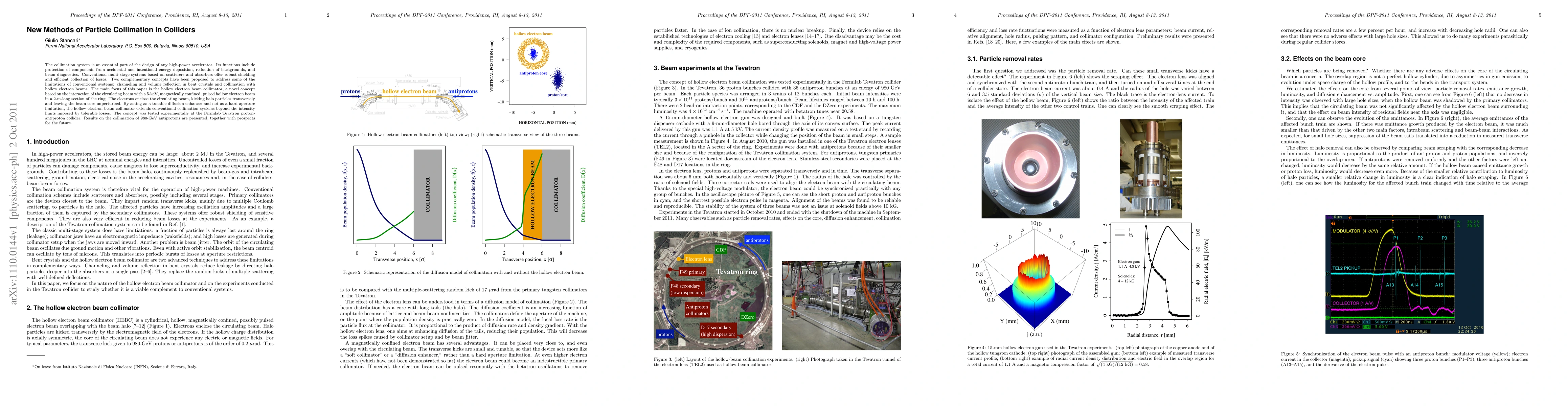 The collimation system is an essential part of the design of any high-power accelerator. Its functions include protection of components from accidental and intentional energy deposition, reduction of backgrounds, and beam diagnostics. Conventional multi-stage systems based on scatterers and absorbers offer robust shielding and efficient collection of losses. Two complementary concepts have been proposed to address some of the limitations of conventional systems: channeling and volume reflection in bent crystals and collimation with hollow electron beams. The main focus of this paper is the hollow electron beam collimator, a novel concept based on the interaction of the circulating beam with a 5-keV, magnetically confined, pulsed hollow electron beam in a 2-m-long section of the ring. The electrons enclose the circulating beam, kicking halo particles transversely and leaving the beam core unperturbed. By acting as tunable diffusion enhancer and not as a hard aperture limitation, the hollow electron beam collimator extends conventional collimation systems beyond the intensity limits imposed by tolerable losses. The concept was tested experimentally at the Fermilab Tevatron proton-antiproton collider. Results on the collimation of 980-GeV antiprotons are presented, together with prospects for the future.