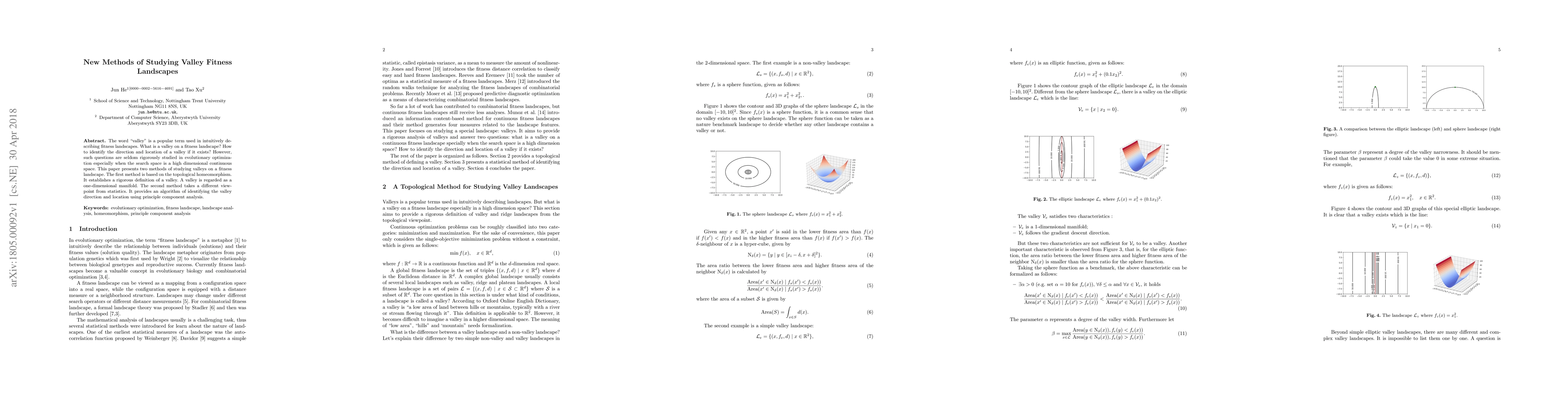 The word "valley" is a popular term used in intuitively describing fitness landscapes. What is a valley on a fitness landscape? How to identify the direction and location of a valley if it exists? However, such questions are seldom rigorously studied in evolutionary optimization especially when the search space is a high dimensional continuous space. This paper presents two methods of studying valleys on a fitness landscape. The first method is based on the topological homeomorphism. It establishes a rigorous definition of a valley. A valley is regarded as a one-dimensional manifold. The second method takes a different viewpoint from statistics. It provides an algorithm of identifying the valley direction and location using principle component analysis.