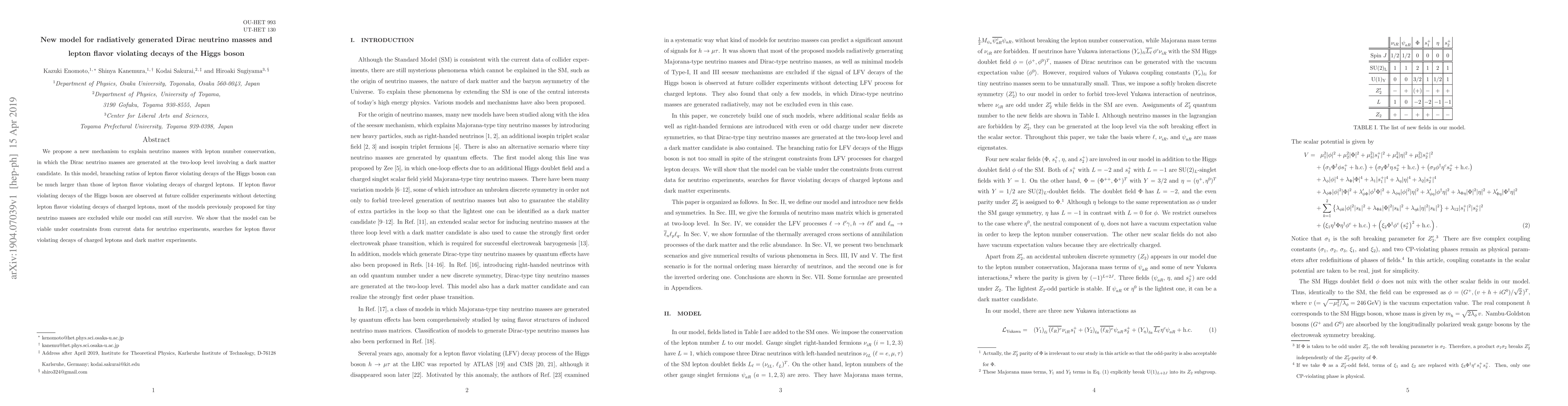 This paper proposes a novel mechanism for generating Dirac neutrino masses through a two-loop process involving a dark matter candidate, while conserving lepton number. It predicts significantly larger branching ratios for lepton flavor violating decays of the Higgs boson compared to charged leptons, offering a viable alternative if such decays are observed in future collider experiments.