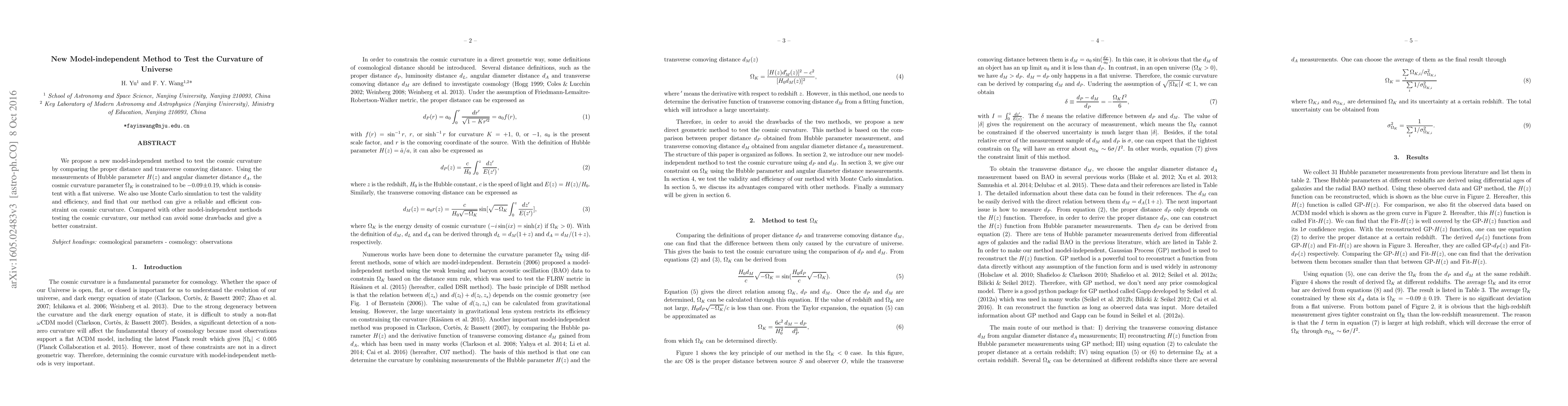 We propose a new model-independent method to test the cosmic curvature by comparing the proper distance and transverse comoving distance. Using the measurements of Hubble parameter $H(z)$ and angular diameter distance $d_A$, the cosmic curvature parameter $\Omega_K$ is constrained to be $-0.09\pm0.19$, which is consistent with a flat universe. We also use Monte Carlo simulation to test the validity and efficiency, and find that our method can give a reliable and efficient constraint on cosmic curvature. Compared with other model-independent methods testing the cosmic curvature, our method can avoid some drawbacks and give a better constraint.