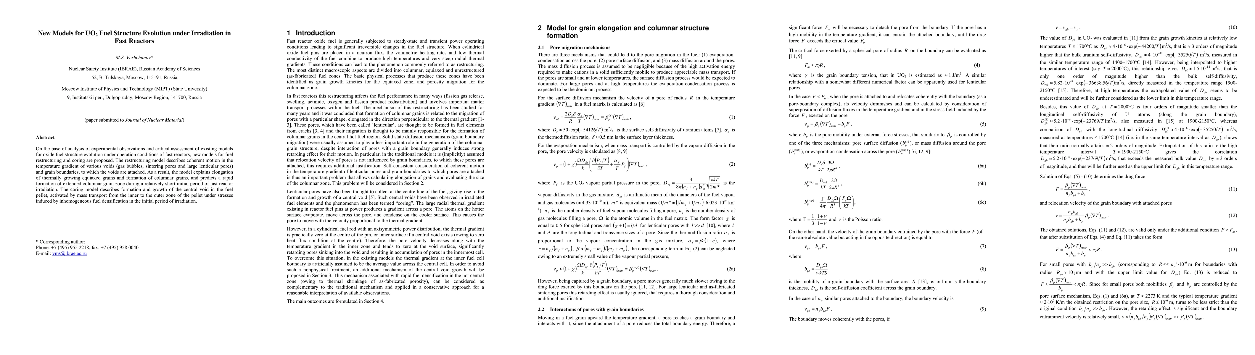 On the base of analysis of experimental observations and critical assessment of existing models for oxide fuel structure evolution under operation conditions of fast reactors, new models for fuel restructuring and coring are proposed. The restructuring model describes coherent motion in the temperature gradient of various voids (gas bubbles, sintering pores and large lenticular pores) and grain boundaries, to which the voids are attached. As a result, the model explains elongation of thermally growing equiaxed grains and formation of columnar grains, and predicts a rapid formation of extended columnar grain zone during a relatively short initial period of fast reactor irradiation. The coring model describes formation and growth of the central void in the fuel pellet, activated by mass transport from the inner to the outer zone of the pellet under stresses induced by inhomogeneous fuel densification in the initial period of irradiation.