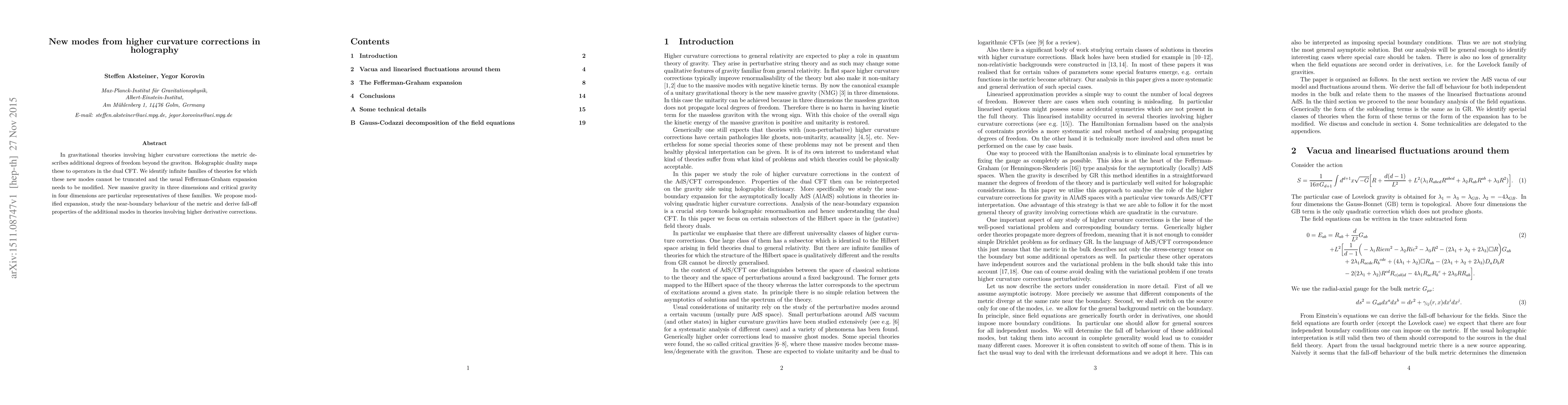 In gravitational theories involving higher curvature corrections the metric describes additional degrees of freedom beyond the graviton. Holographic duality maps these to operators in the dual CFT. We identify infinite families of theories for which these new modes cannot be truncated and the usual Fefferman-Graham expansion needs to be modified. New massive gravity in three dimensions and critical gravity in four dimensions are particular representatives of these families. We propose modified expansion, study the near-boundary behaviour of the metric and derive fall-off properties of the additional modes in theories involving higher derivative corrections.