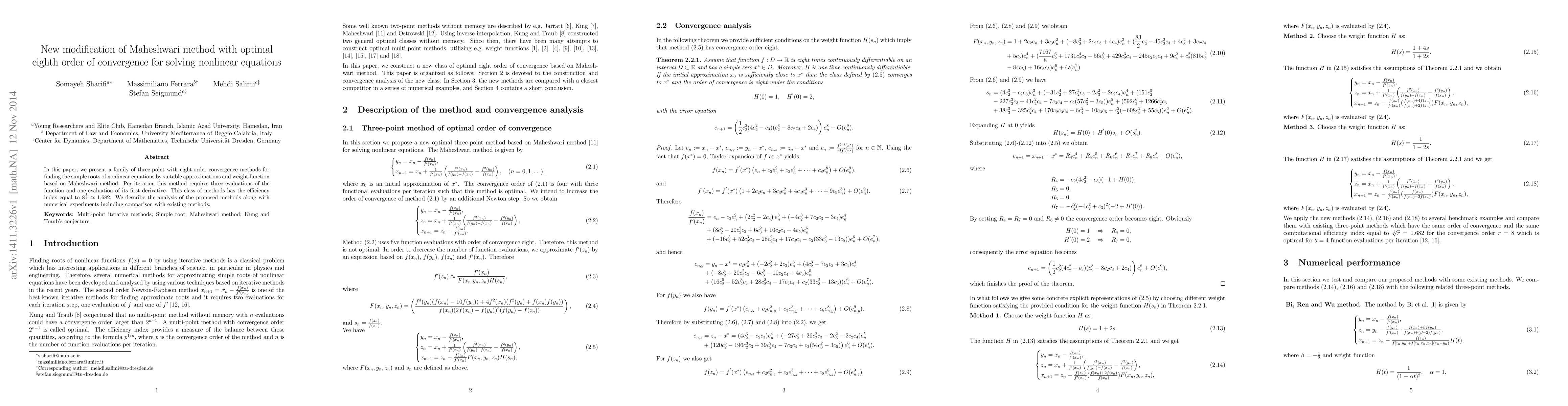 In this paper, we present a family of three-point with eight-order convergence methods for finding the simple roots of nonlinear equations by suitable approximations and weight function based on Maheshwari method. Per iteration this method requires three evaluations of the function and one evaluation of its first derivative. This class of methods has the efficiency index equal to $8^{\frac{1}{4}}\approx 1.682$. We describe the analysis of the proposed methods along with numerical experiments including comparison with existing methods.