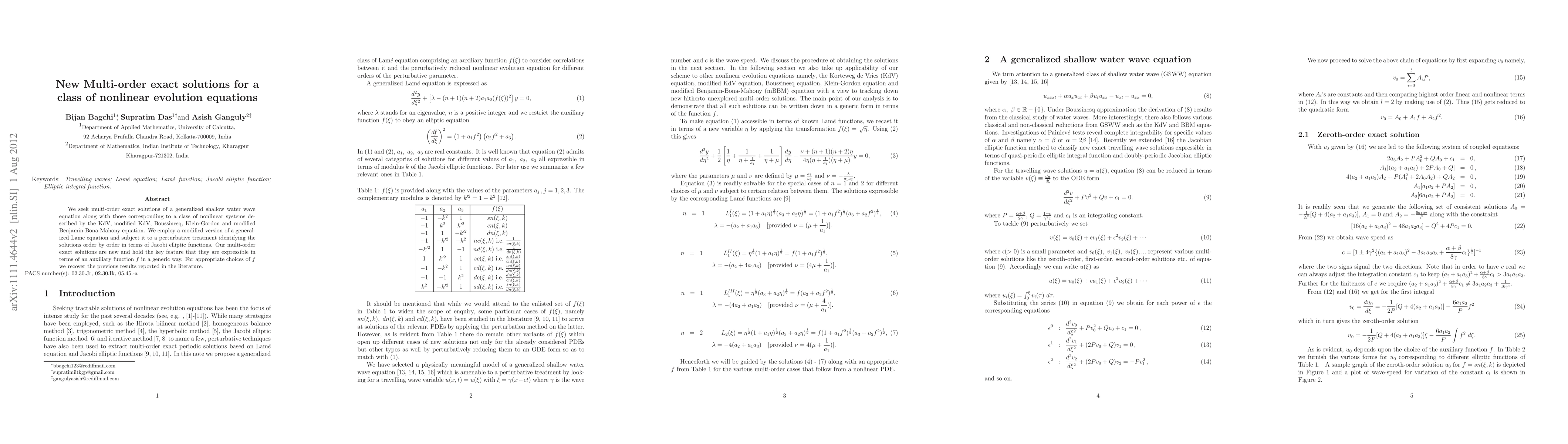 We seek multi-order exact solutions of a generalized shallow water wave equation along with those corresponding to a class of nonlinear systems described by the KdV, modified KdV, Boussinesq, Klein-Gordon and modified Benjamin-Bona-Mahony equation. We employ a modified version of a generalized Lame equation and subject it to a perturbative treatment identifying the solutions order by order in terms of Jacobi elliptic functions. Our multi-order exact solutions are new and hold the key feature that they are expressible in terms of an auxiliary function f in a generic way. For appropriate choices of f we recover the previous results reported in the literature.