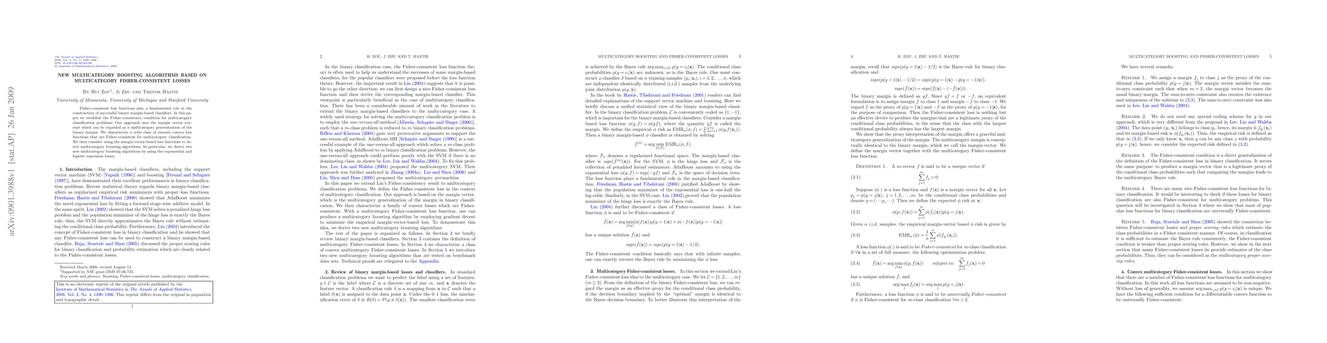 This paper introduces Fisher-consistent loss functions for multicategory classification, generalizing the margin concept to multiple categories. It proposes new multicategory boosting algorithms using exponential and logistic regression losses based on these losses.