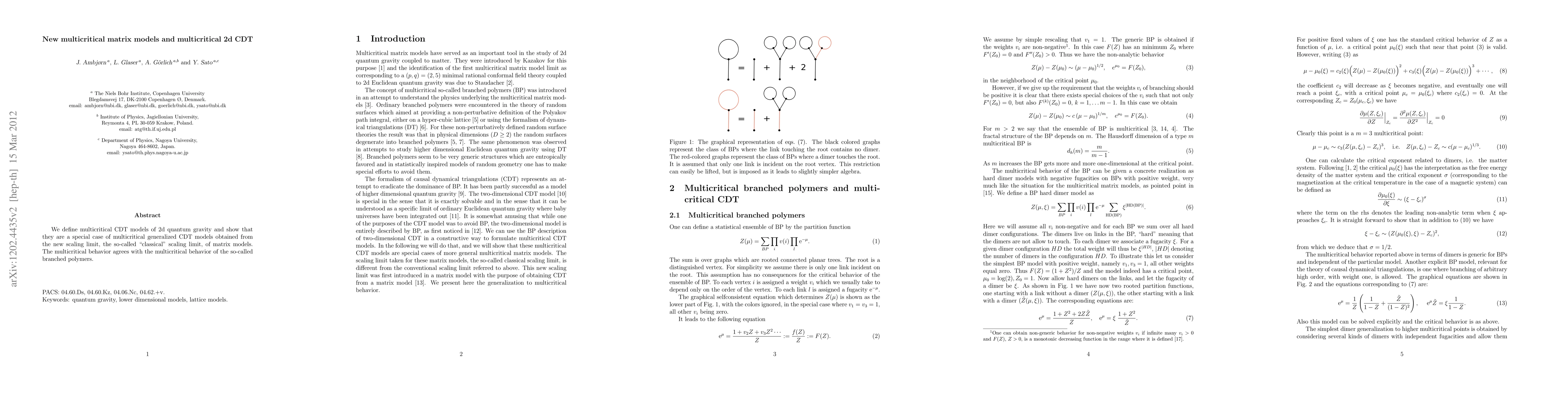 Summary: This paper introduces multicritical CDT models of 2d quantum gravity, demonstrating they arise from a new "classical" scaling limit of matrix models, and aligns their multicritical behavior with that of branched polymers.
