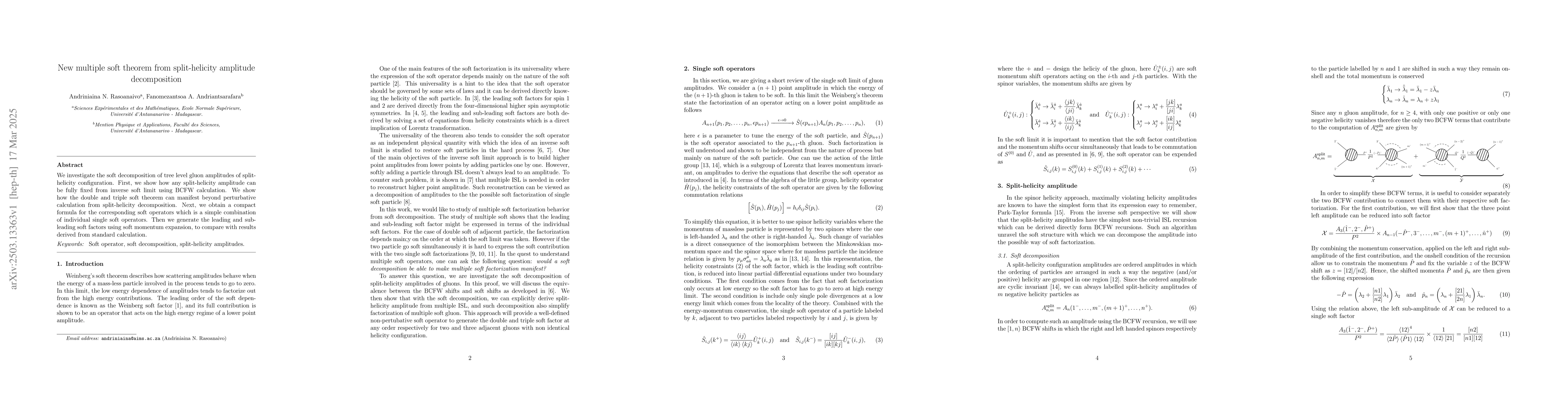 The paper presents a novel approach to deriving multiple soft theorems from split-helicity amplitude decomposition, providing explicit formulas for soft operators and soft factors.