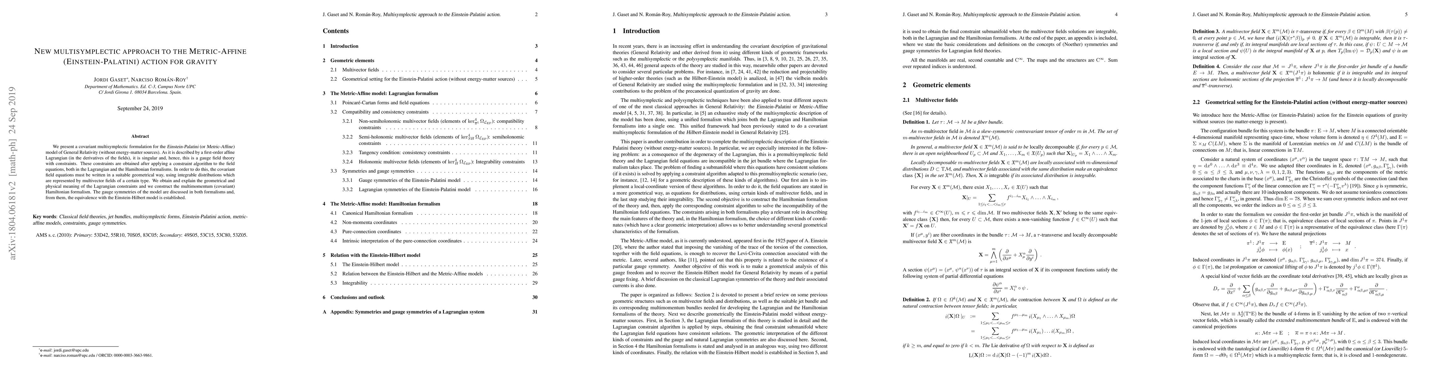 We present a covariant multisymplectic formulation for the Einstein-Palatini (or Metric-Affine) model of General Relativity (without energy-matter sources). As it is described by a first-order affine Lagrangian (in the derivatives of the fields), it is singular and, hence, this is a gauge field theory with constraints. These constraints are obtained after applying a constraint algorithm to the field equations, both in the Lagrangian and the Hamiltonian formalisms. In order to do this, the covariant field equations must be written in a suitable geometrical way, using integrable distributions which are represented by multivector fields of a certain type. We obtain and explain the geometrical and physical meaning of the Lagrangian constraints and we construct the multimomentum (covariant) Hamiltonian formalism. The gauge symmetries of the model are discussed in both formalisms and, from them, the equivalence with the Einstein-Hilbert model is established.