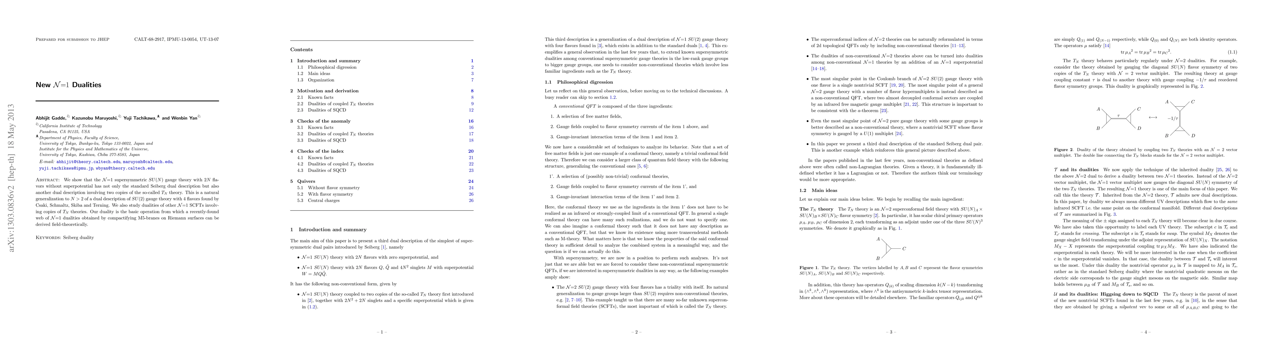 This paper demonstrates dualities in N=1 supersymmetric SU(N) gauge theory with 2N flavors, revealing a Seiberg dual and an additional dual description involving two copies of T_N theory. It extends previous dualities found for SU(2) and forms the foundation for a web of N=1 dualities derived from M5-brane compactifications.