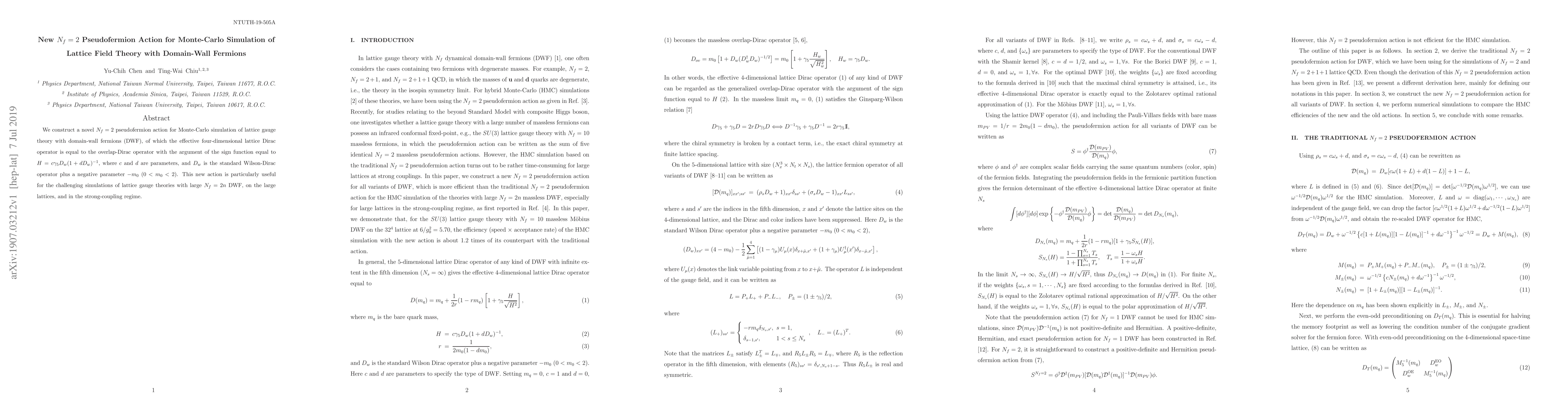 We construct a novel $ N_f = 2 $ pseudofermion action for Monte-Carlo simulation of lattice gauge theory with domain-wall fermions (DWF), of which the effective four-dimensional lattice Dirac operator is equal to the overlap-Dirac operator with the argument of the sign function equal to $ H = c \gamma_5 D_w (1 + d D_w)^{-1} $, where $ c $ and $ d $ are parameters, and $D_w$ is the standard Wilson-Dirac operator plus a negative parameter $-m_0 \; (0 < m_0 < 2)$. This new action is particularly useful for the challenging simulations of lattice gauge theories with large $N_f = 2n $ DWF, on the large lattices, and in the strong-coupling regime.