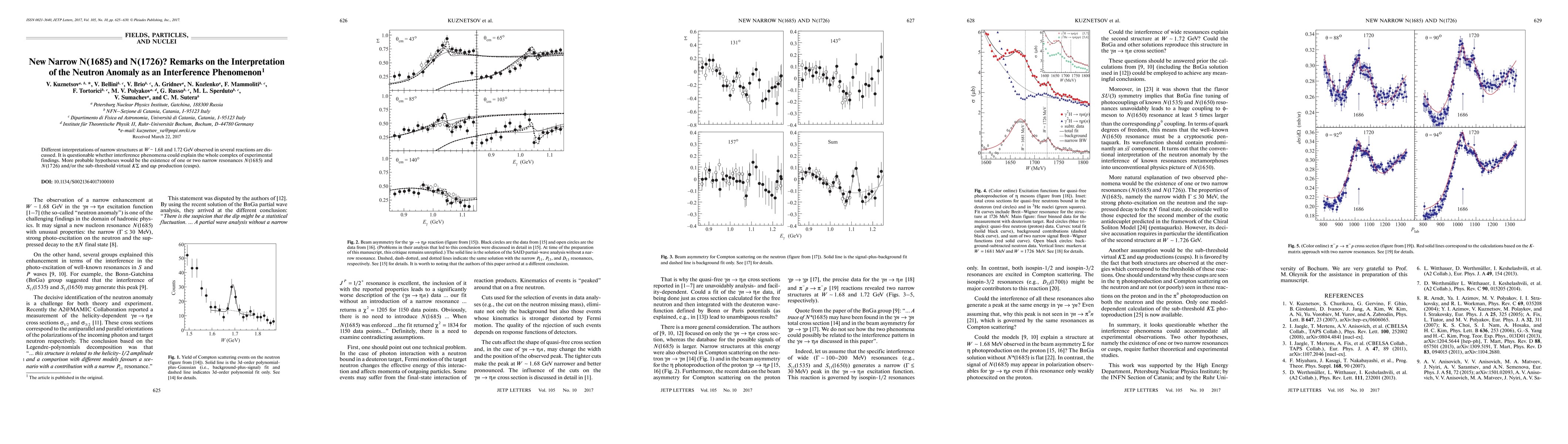 Research discusses narrow structures at 1.68 and 1.72 GeV in particle reactions, suggesting possible existence of resonances N(1685) and N(1726), or virtual pion production 'cusps' to explain experimental findings.