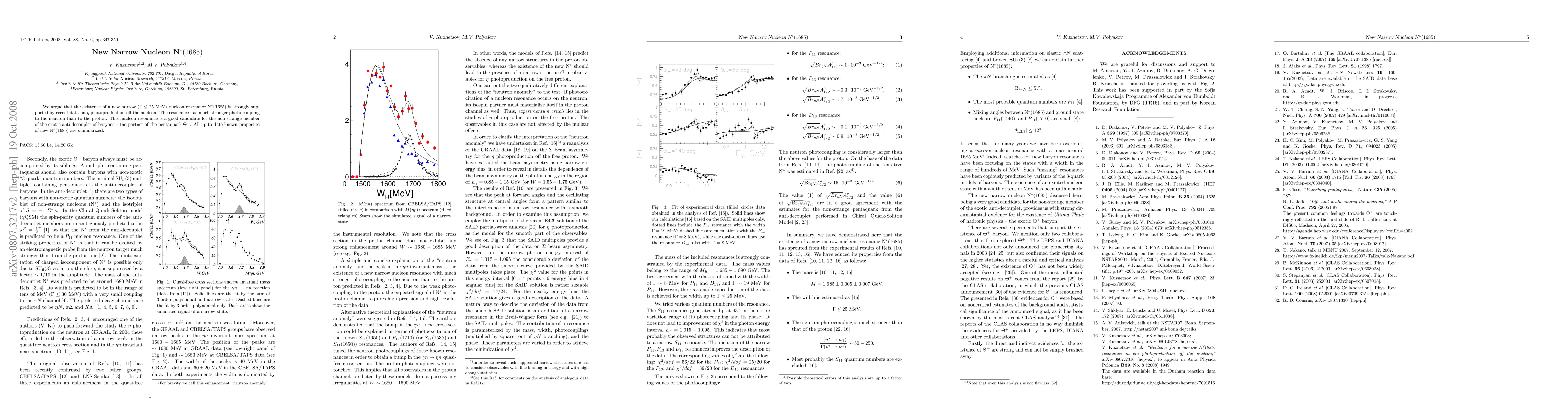 We argue that the existence of a new narrow (Gamma < 25 MeV) nucleon resonance N*(1685) is strongly supported by recent data on eta photoproduction off the nucleon. The resonance has much stronger photo-coupling to the neutron than to the proton. This nucleon resonance is a good candidate for the non-strange member of the exotic anti-decouplet of baryons -- the partner of the pentaquark Theta+. All up to date known properties of new N*(1685) are summarized.