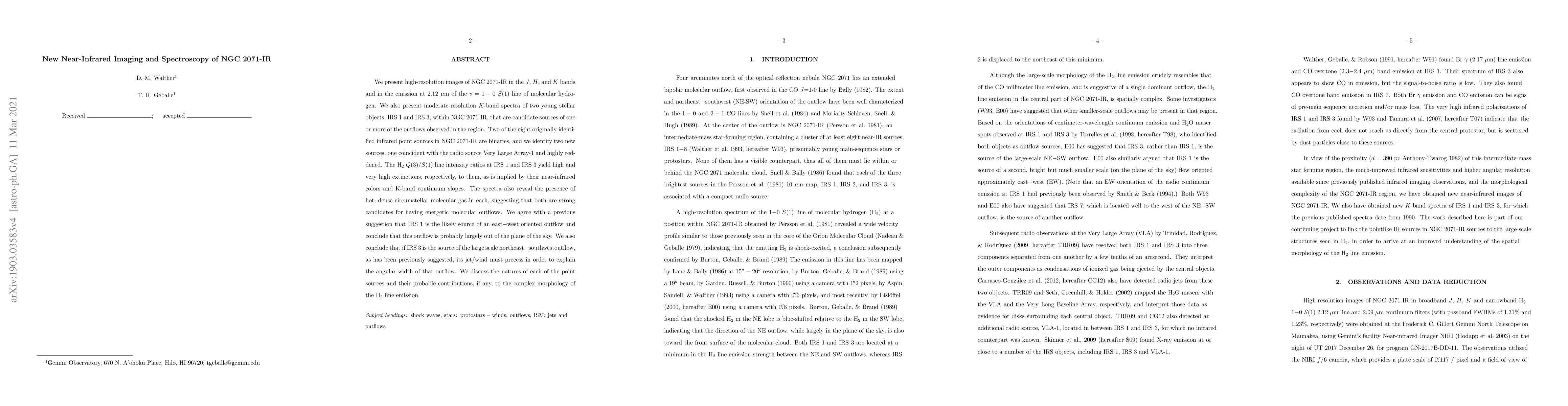 This paper presents high-resolution near-infrared imaging and spectroscopy of NGC 2071-IR, identifying two new infrared point sources and confirming the binary nature of two others. The study reveals high extinction and dense circumstellar gas in young stellar objects IRS 1 and IRS 3, suggesting energetic outflows, with IRS 1 likely driving an E-W outflow and IRS 3's outflow possibly precessing.