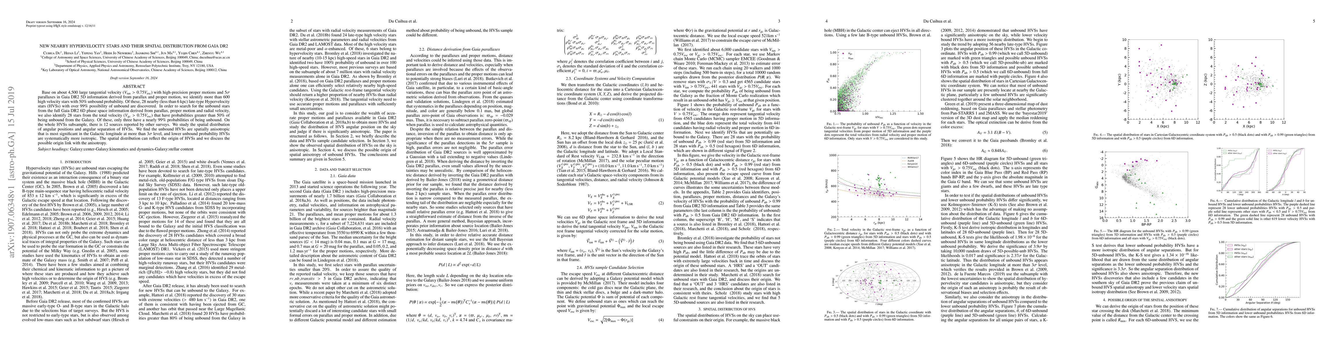This paper identifies over 600 high-velocity stars from Gaia DR2 data, including 28 nearby hypervelocity stars with high unbound probabilities. The spatial distribution of these hypervelocity stars shows significant anisotropy, suggesting a link to their origin.