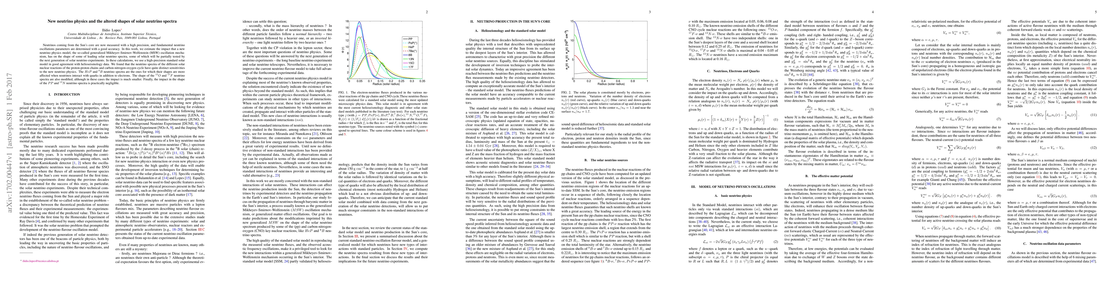 Neutrinos coming from the Sun's core are now measured with a high precision, and fundamental neutrino oscillations parameters are determined with a good accuracy. In this work, we estimate the impact that a new neutrino physics model, the so-called generalized Mikheyev-Smirnov-Wolfenstein (MSW) oscillation mechanism, has on the shape of some of leading solar neutrino spectra, some of which will be partially tested by the next generation of solar neutrino experiments. In these calculations, we use a high-precision standard solar model in good agreement with helioseismology data. We found that the neutrino spectra of the different solar nuclear reactions of the proton-proton chains and carbon-nitrogen-oxygen cycle have quite distinct sensitivities to the new neutrino physics. The $HeP$ and $^8B$ neutrino spectra are the ones for which their shapes are more affected when neutrinos interact with quarks in addition to electrons. The shape of the $^{15}O$ and $^{17}F$ neutrino spectra are also modified, although in these cases the impact is much smaller. Finally, the impact in the shape of the $PP$ and $^{13}N$ neutrino spectra is practically negligible.