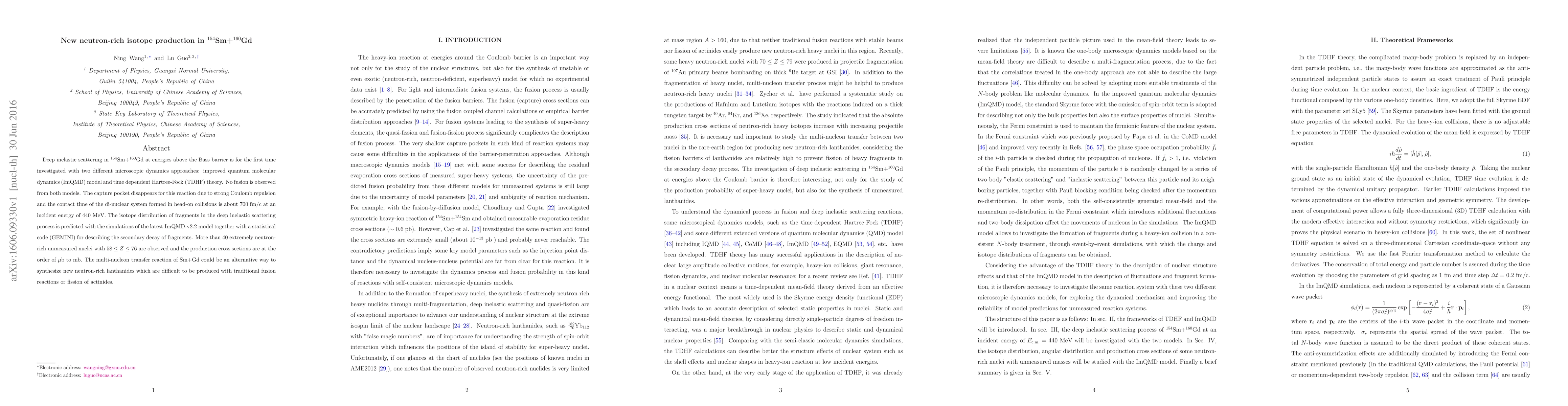 Deep inelastic scattering in $^{154}$Sm+$^{160}$Gd at energies above the Bass barrier is for the first time investigated with two different microscopic dynamics approaches: improved quantum molecular dynamics (ImQMD) model and time dependent Hartree-Fock (TDHF) theory. No fusion is observed from both models. The capture pocket disappears for this reaction due to strong Coulomb repulsion and the contact time of the di-nuclear system formed in head-on collisions is about 700 fm/c at an incident energy of 440 MeV. The isotope distribution of fragments in the deep inelastic scattering process is predicted with the simulations of the latest ImQMD-v2.2 model together with a statistical code (GEMINI) for describing the secondary decay of fragments. More than 40 extremely neutron-rich unmeasured nuclei with $58 \le Z\le 76$ are observed and the production cross sections are at the order of ${\rm \mu b}$ to mb. The multi-nucleon transfer reaction of Sm+Gd could be an alternative way to synthesize new neutron-rich lanthanides which are difficult to be produced with traditional fusion reactions or fission of actinides.
