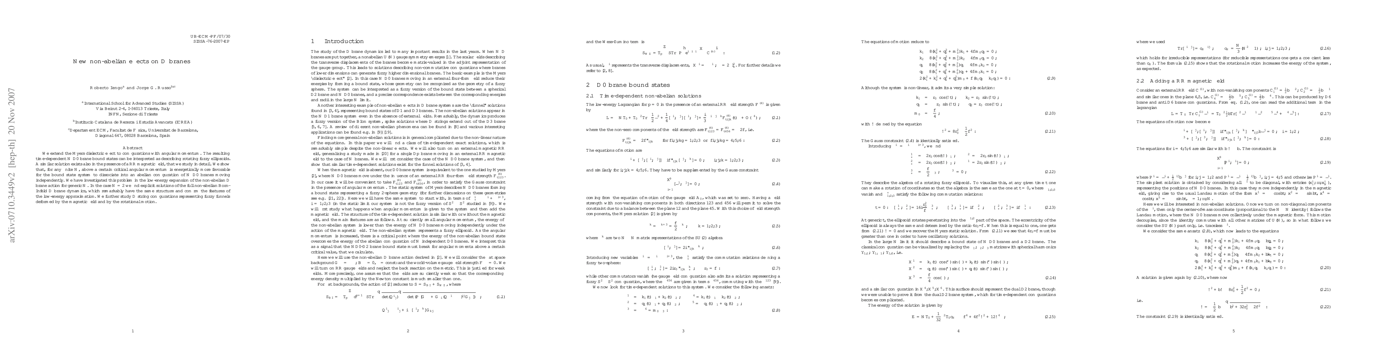 We extend the Myers dielectric effect to configurations with angular momentum. The resulting time-dependent N D0 brane bound states can be interpreted as describing rotating fuzzy ellipsoids. A similar solution exists also in the presence of a RR magnetic field, that we study in detail. We show that, for any finite N, above a certain critical angular momentum is energetically more favorable for the bound state system to dissociate into an abelian configuration of N D0 branes moving independently. We have investigated this problem in the low-energy expansion of the non-abelian D brane action for generic N. In the case N=2 we find explicit solutions of the full non-abelian Born-Infeld D brane dynamics, which remarkably have the same structure and confirm the features of the low-energy approximation. We further study D string configurations representing fuzzy funnels deformed by the magnetic field and by the rotational motion.