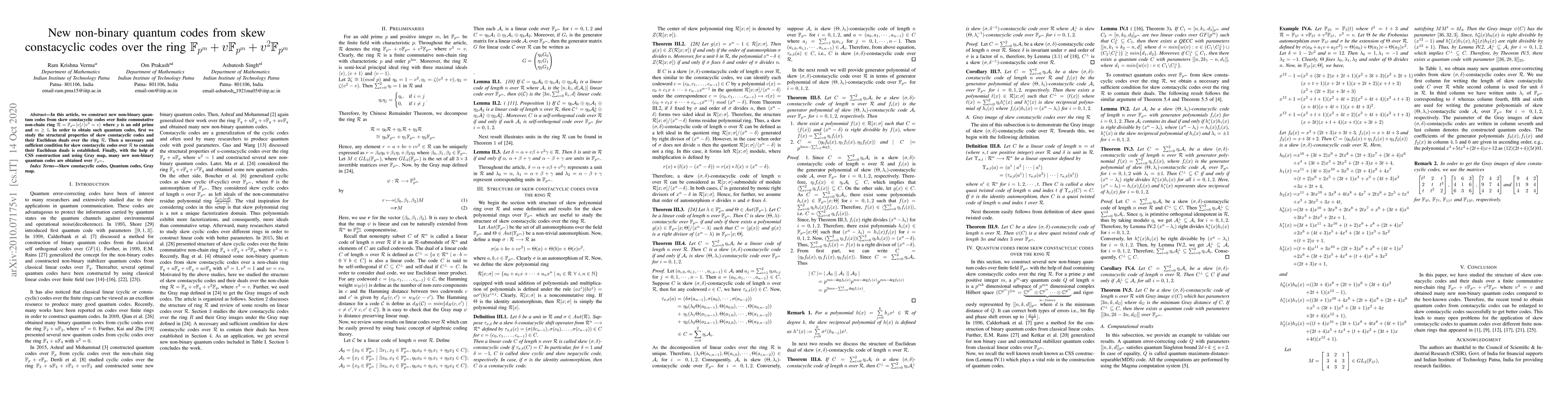 This paper constructs new non-binary quantum codes from skew constacyclic codes over a specific non-chain ring. It establishes a necessary and sufficient condition for these codes to contain their Euclidean duals, and utilizes the CSS construction and Gray map to derive many new quantum codes over $\mathbb{F}_{p^m}$.