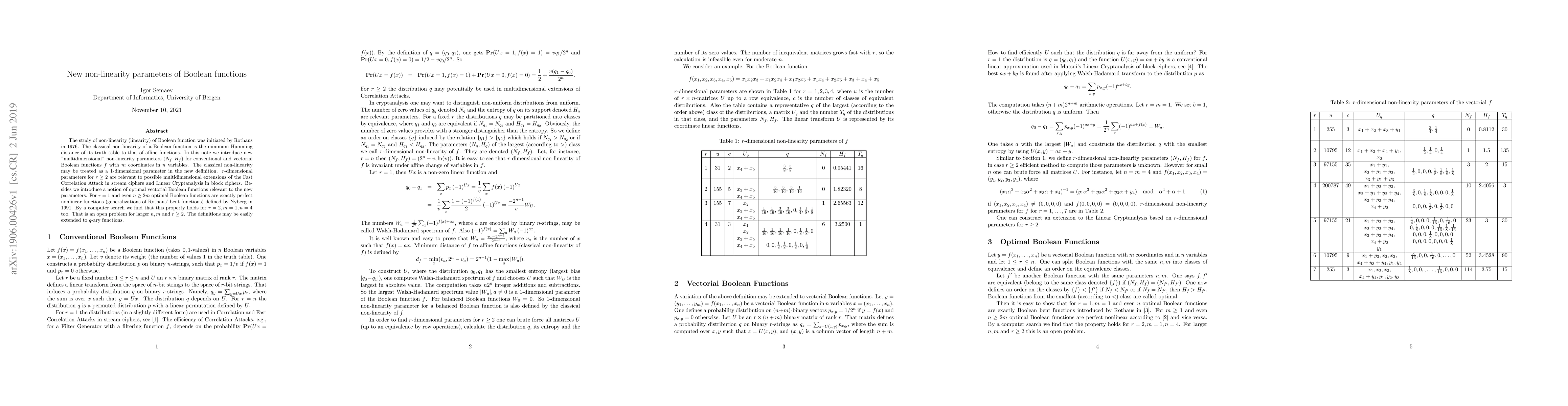 This paper introduces new "multidimensional" non-linearity parameters $(N_f,H_f)$ for Boolean functions, extending classical non-linearity measures. It explores their relevance to advanced cryptographic attacks and identifies optimal vectorial Boolean functions under these new parameters.