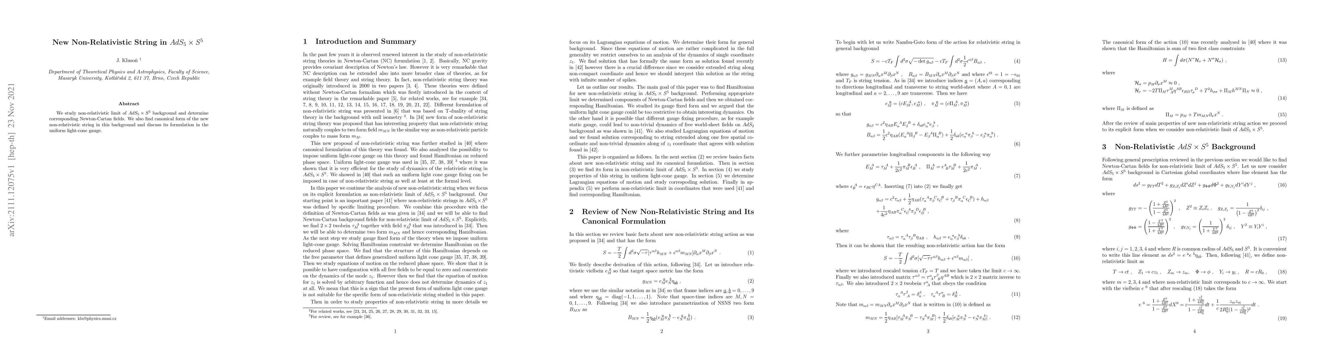 This paper explores the non-relativistic limit of the AdS(5)xS(5) background, identifying the associated Newton-Cartan fields, and formulates a new non-relativistic string within this framework, detailing its structure in the uniform light-cone gauge.