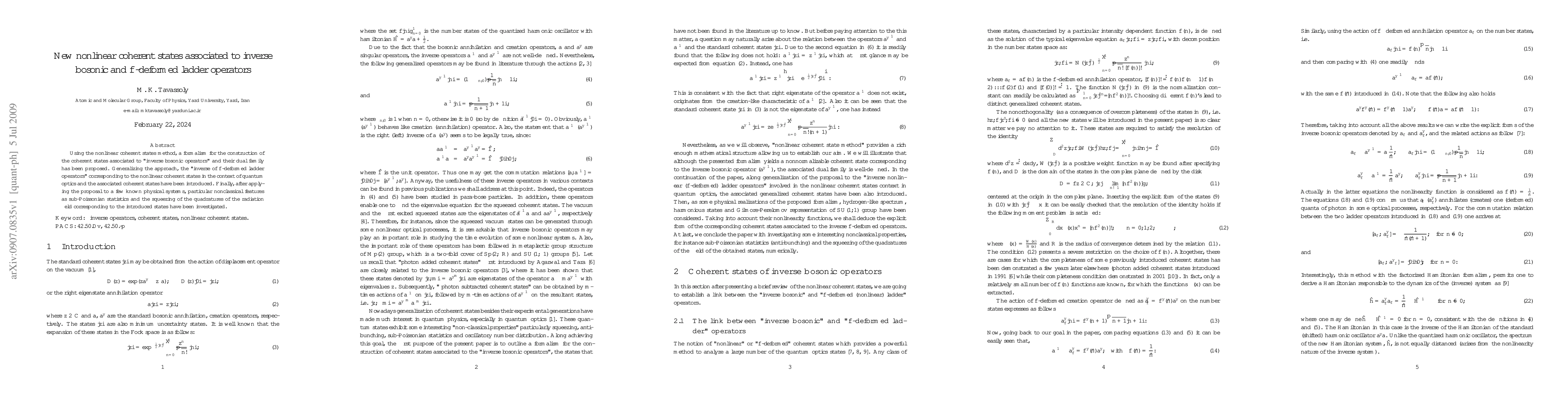 This paper proposes a formalism for constructing nonlinear coherent states linked to inverse bosonic and $f$-deformed ladder operators, exploring their nonclassical features such as sub-Poissonian statistics and quadrature squeezing in quantum optics.