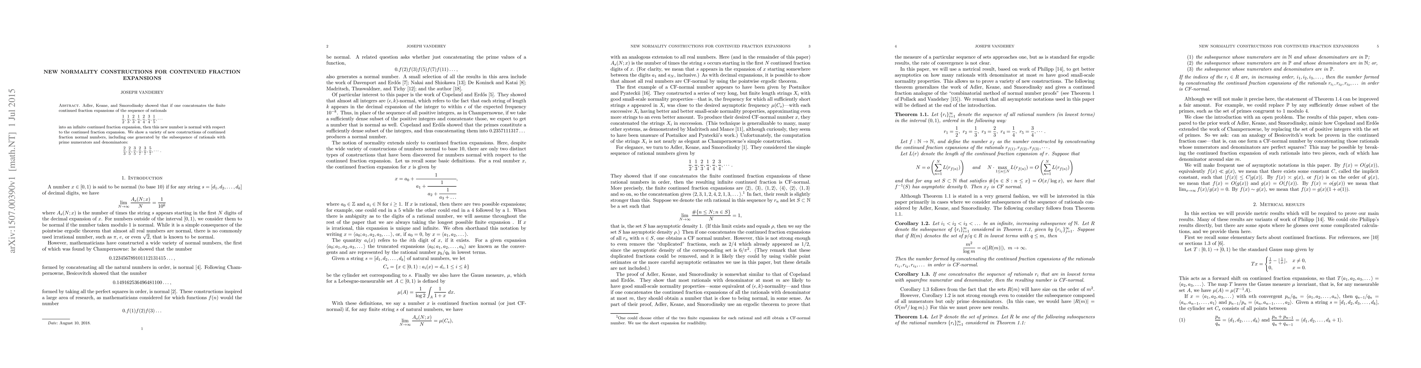This paper explores new constructions for continued fraction normal numbers, extending the work of Adler, Keane, and Smorodinsky by generating normal numbers from various subsequences of rationals, including those with prime numerators and denominators. The study reveals diverse methods for creating such numbers.