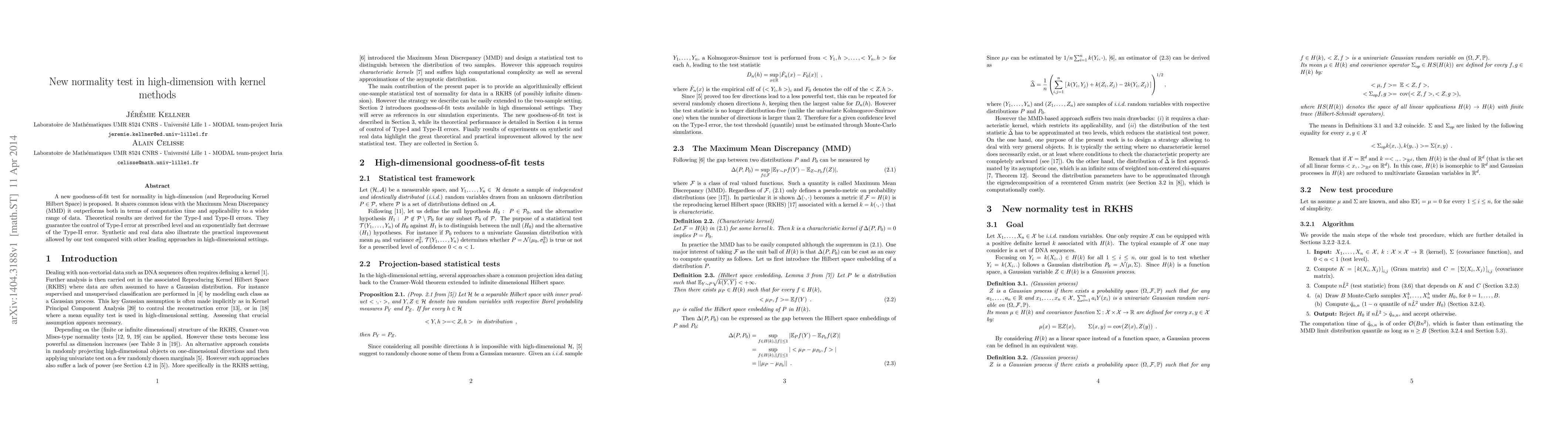A new goodness-of-fit test for normality in high-dimension (and Reproducing Kernel Hilbert Space) is proposed. It shares common ideas with the Maximum Mean Discrepancy (MMD) it outperforms both in terms of computation time and applicability to a wider range of data. Theoretical results are derived for the Type-I and Type-II errors. They guarantee the control of Type-I error at prescribed level and an exponentially fast decrease of the Type-II error. Synthetic and real data also illustrate the practical improvement allowed by our test compared with other leading approaches in high-dimensional settings.