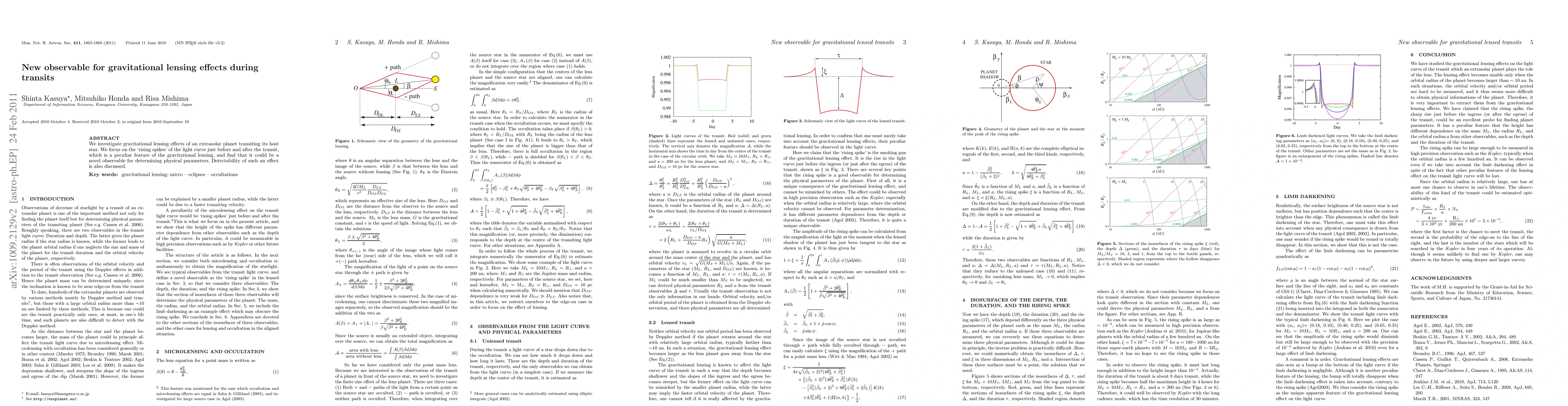 This paper explores the gravitational lensing effects during an extrasolar planet transit, highlighting the "rising spikes" in the light curve as a novel observable for determining planetary and stellar parameters. The study also assesses the detectability of these lensing effects.