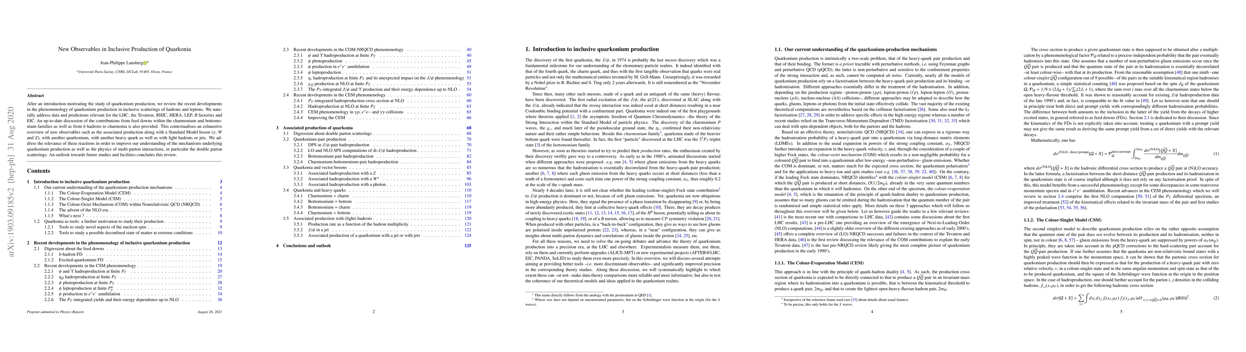 After an introduction motivating the study of quarkonium production, we review the recent developments in the phenomenology of quarkonium production in inclusive scatterings of hadrons and leptons. We naturally address data and predictions relevant for the LHC, the Tevatron, RHIC, HERA, LEP, B factories and EIC. An up-to-date discussion of the contributions from feed downs within the charmonium and bottomonium families as well as from b hadrons to charmonia is also provided. This contextualises an exhaustive overview of new observables such as the associated production along with a Standard Model boson (photon, W and Z), with another quarkonium, with another heavy quark as well as with light hadrons or jets. We address the relevance of these reactions in order to improve our understanding of the mechanisms underlying quarkonium production as well as the physics of multi-parton interactions, in particular the double parton scatterings. An outlook towards future studies and facilities concludes this review.
